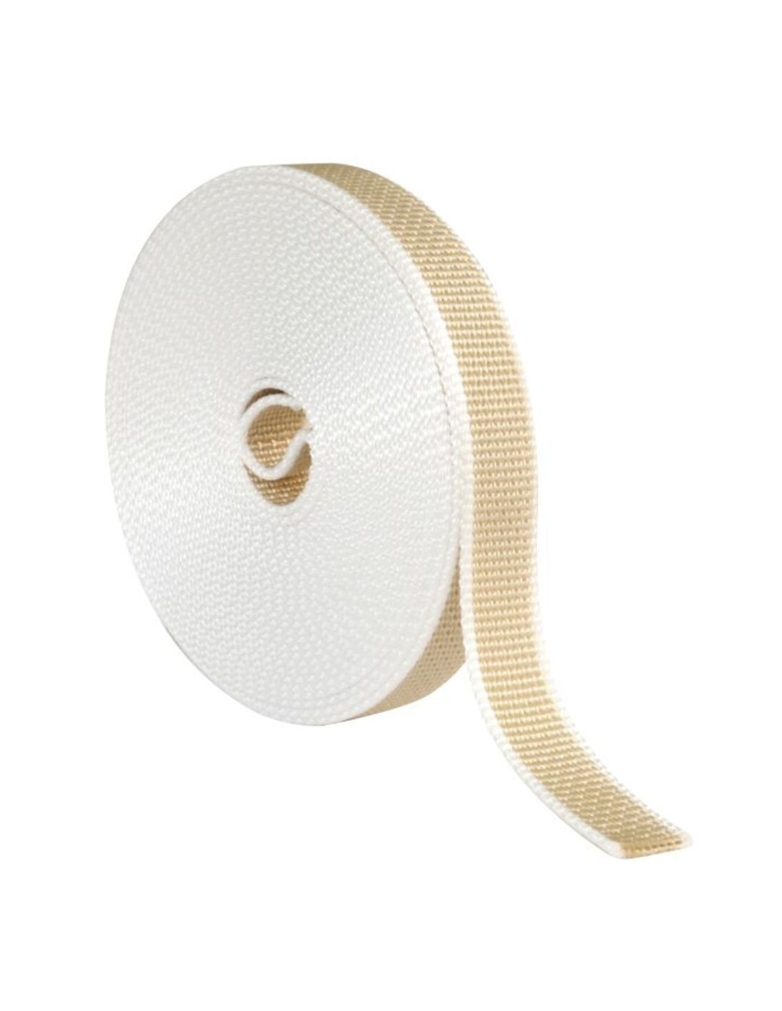 Cinta persiana beige y blanco de Amig, ideal para reparar y personalizar tus persianas. Medidas: 22x6 m. Calidad y durabilidad en un solo producto.
