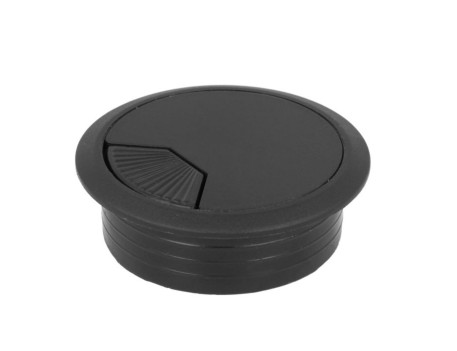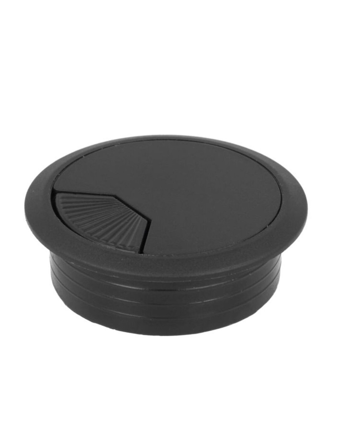 Tapón pasacables AMIG M.140 60x72 mm en color negro. Ideal para organizar y proteger cables en instalaciones eléctricas y de comunicación.