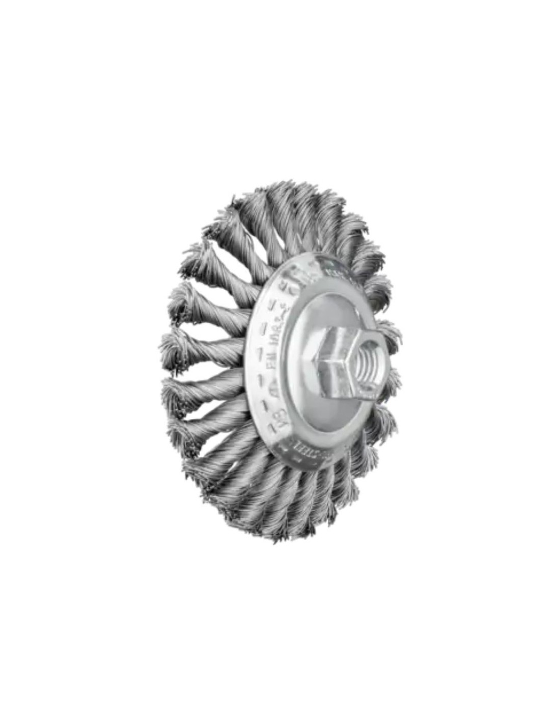 Carda cónica trenzada KBG de 115 mm de diámetro y 15 mm de ancho, con rosca M14 y alambre de acero de 0,50 mm para amoladora angular. Longitud de cerda 26 mm, 24 alambres trenzados, sistema de fijación por rosca, velocidad máxima 15.000 r.p.m., velocidades óptimas entre 7.500 y 12.500 r.p.m., diámetro exterior 115 mm, diámetro del alambre 0,5 mm, embalaje POS, 1 unidad por paquete.
