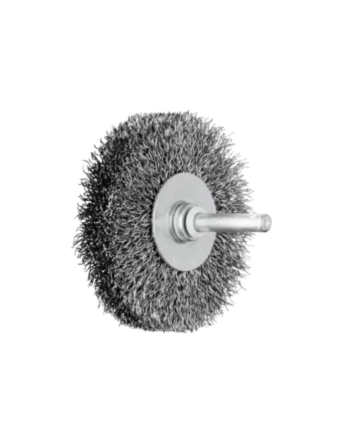 Carda redonda POS sin trenzar RBU Ø 70x15 mm con mango Ø 6 mm y alambre de acero Ø 0,30 mm, longitud de cerda 19 mm, longitud total 50 mm, sistema de fijación por mango, velocidad máxima 15.000 r.p.m., velocidades óptimas entre 7.500 y 11.300 r.p.m., diámetro exterior 70 mm, embalaje POS.