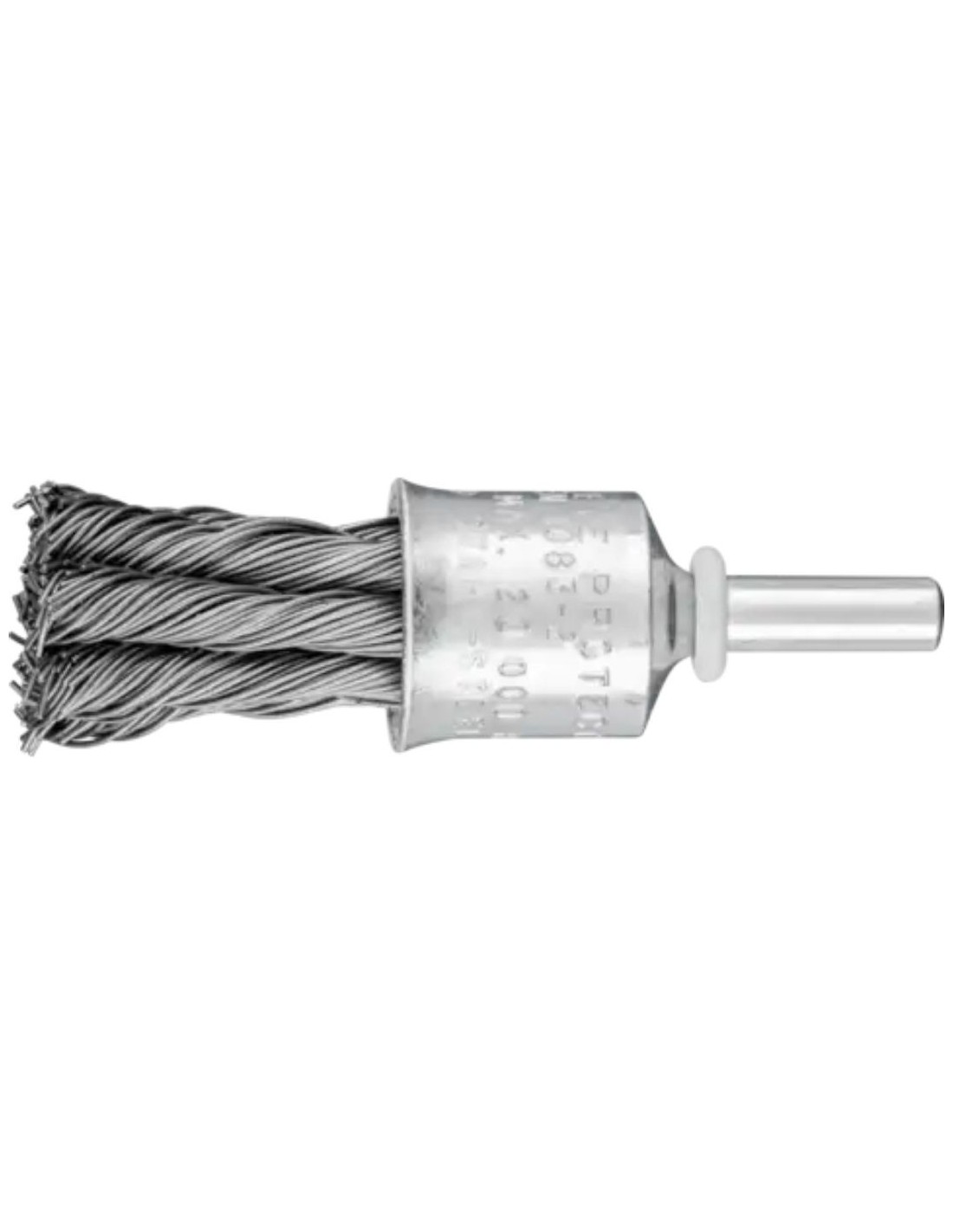 Carda brocha POS trenzada PBG de Ø 19 mm con mango de Ø 6 mm y alambre de acero Ø 0,50 mm, equipada con 6 alambres trenzados, longitud de cerda de 28 mm y longitud total de 68 mm, fijación mediante mango, diseñada para trabajos exigentes con r.p.m. máximas de 20.000 y óptimas entre 10.000 y 15.000, con vaso de Ø 19 mm, presentada en embalaje POS y unidad de embalaje de 10 piezas.