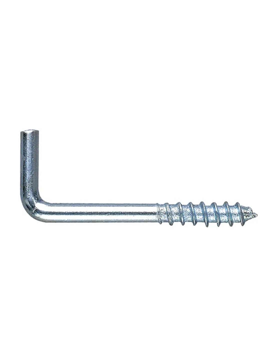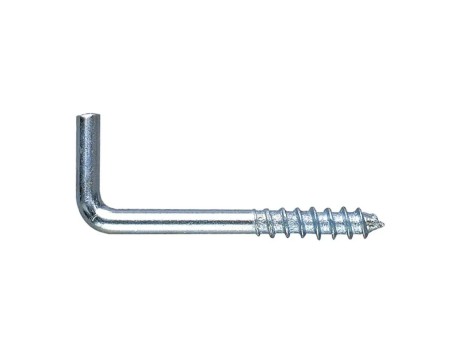 Alcayata roscada, también llamada escarpia roscada. Permite fijar elementos ligeros como cuadros u otros elementos decorativos sobre superficies de madera. Si se utiliza junto a tacos de nylon, se puede emplear sobre paredes de hormigón u otros materiales. Está fabricada en acero zincado.