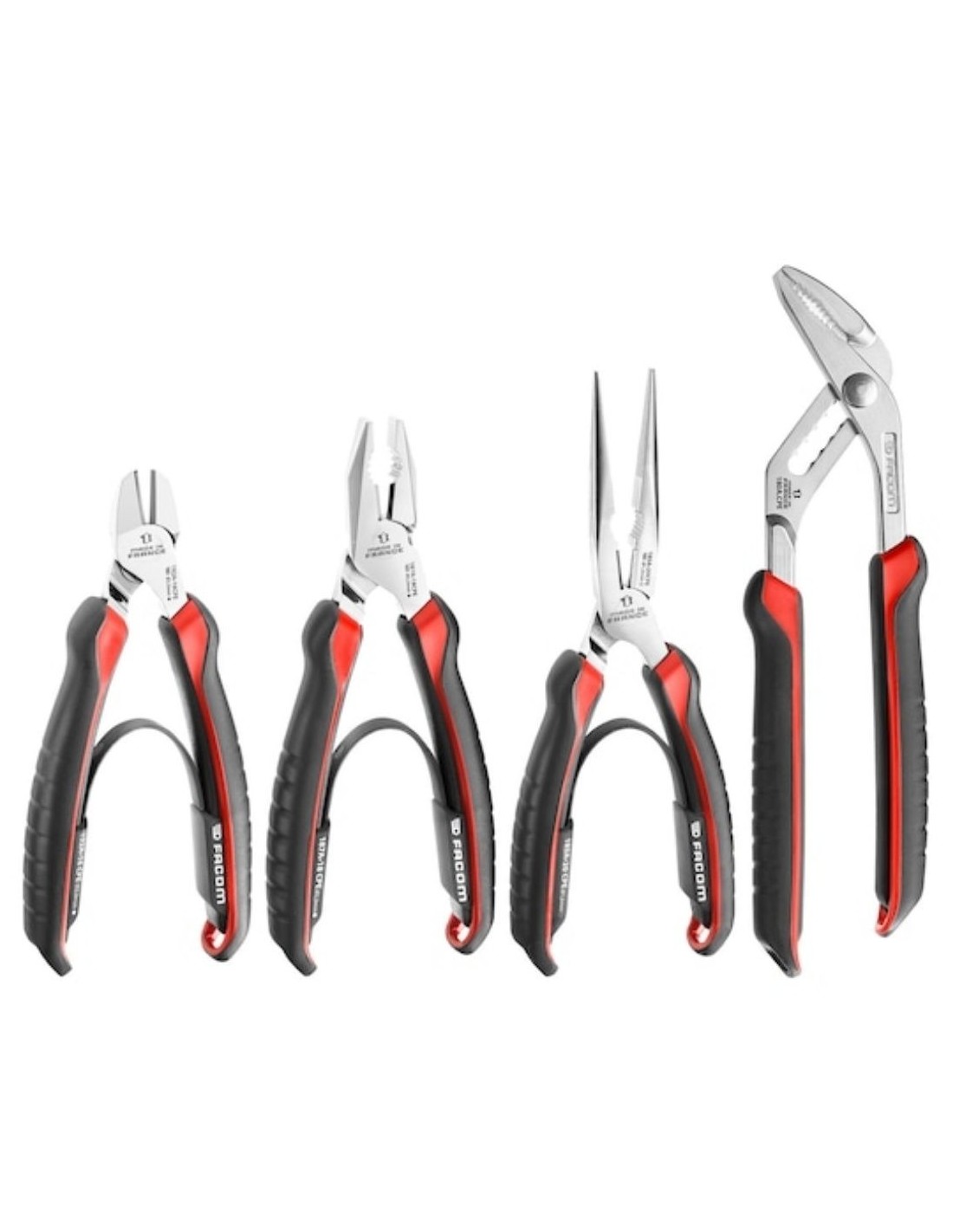 Alicates de corte diagonal de alto rendimiento (160 mm) - 192A.16CPE, alicates universales de articulación deslizante de alto rendimiento - 180A.CPE y alicates de punta semicircular larga - 185A.20CPE.