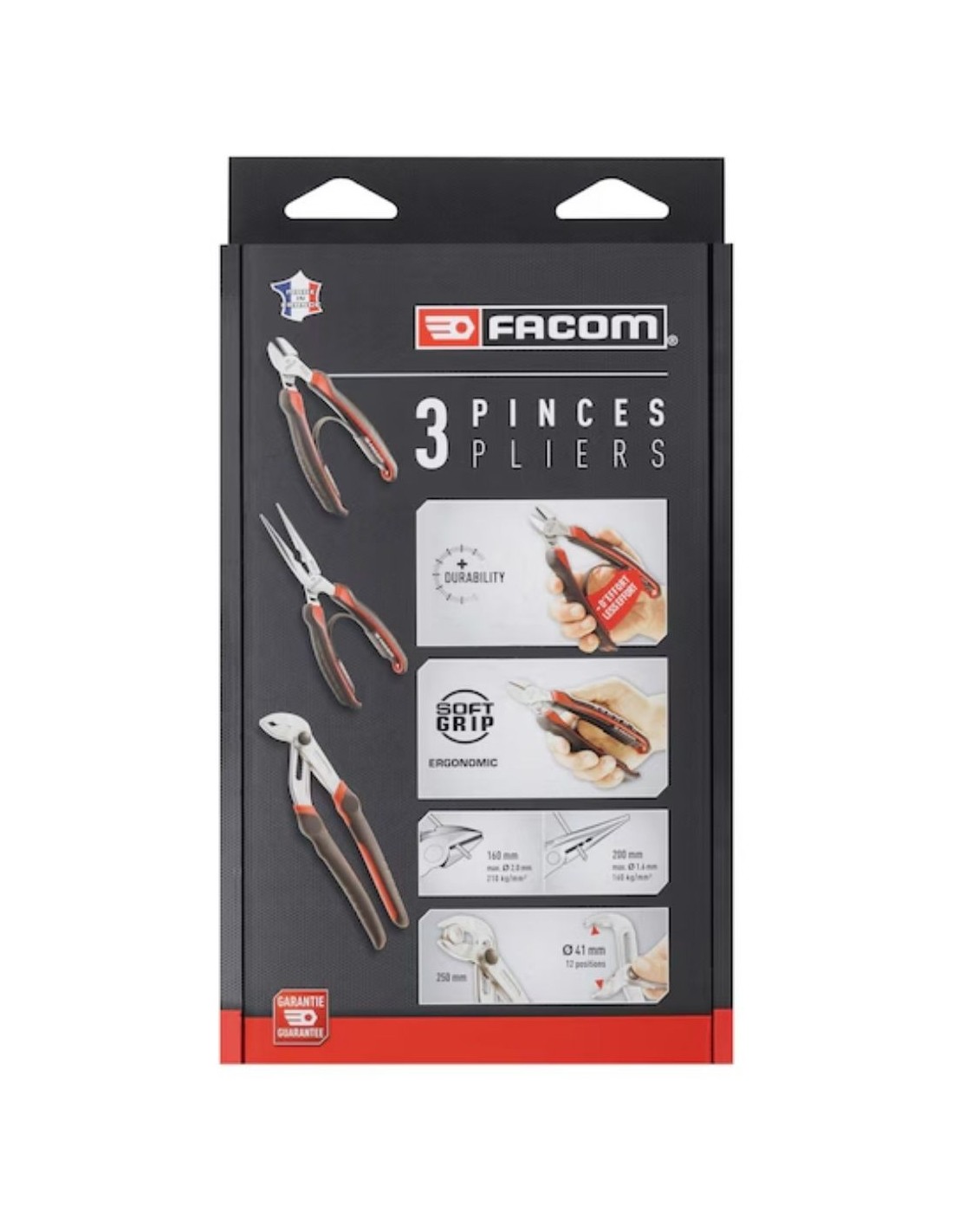 Set profesional que incluye alicates de sujeción multigrip con doble articulación deslizante (181A.25CPE), alicates de corte diagonal de alto rendimiento (192A.16CPE) y alicates de punta semicircular larga (185A.20CPE), diseñados para ofrecer versatilidad, precisión y durabilidad en una amplia gama de trabajos. Los alicates multigrip permiten ajustar el agarre según el tamaño de la pieza, proporcionando control y fuerza de sujeción con mínima fatiga; los de corte diagonal realizan cortes limpios y precisos en alambres, cables y conductores, mientras que los de punta semicircular larga facilitan trabajos de precisión, doblado y modelado en espacios reducidos. Fabricados con acero de alta calidad y mangos ergonómicos, ofrecen comodidad, seguridad y rendimiento óptimo, convirtiéndolos en herramientas esenciales para profesionales y aficionados del bricolaje, la mecánica y la electricidad.