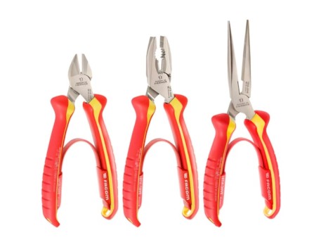 Alicates combinados 187.18AVE, alicates de corte diagonal 391A.16VE y alicates de punta semicircular 185A.20VE.