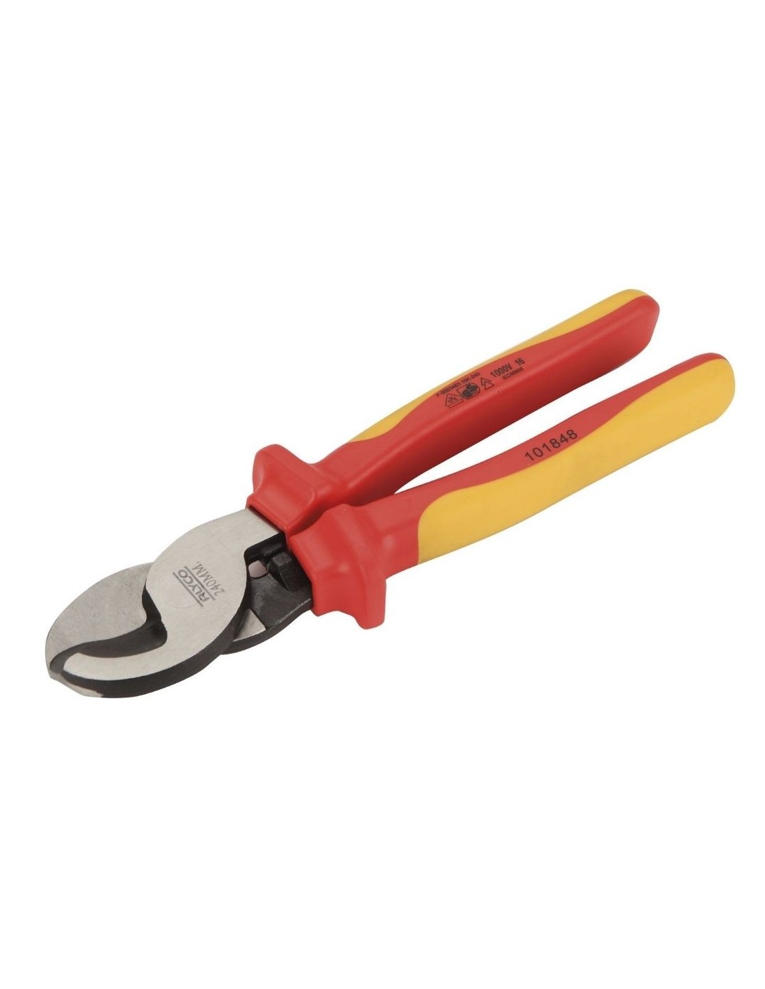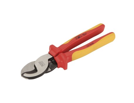 Cortante aislado 1000V fabricado en acero al Cromo Vanadio tratado térmicamente, con filos japoneses enfrentados templados por inducción para un corte preciso y duradero de cables eléctricos de cobre y aluminio hasta 13,5 mm; su mango bimaterial ergonómico y aislante protege al usuario contra descargas eléctricas de hasta 1000V, siendo ideal para trabajos eléctricos, aunque no debe usarse para cortar alambre de acero ni cobre trenzado.