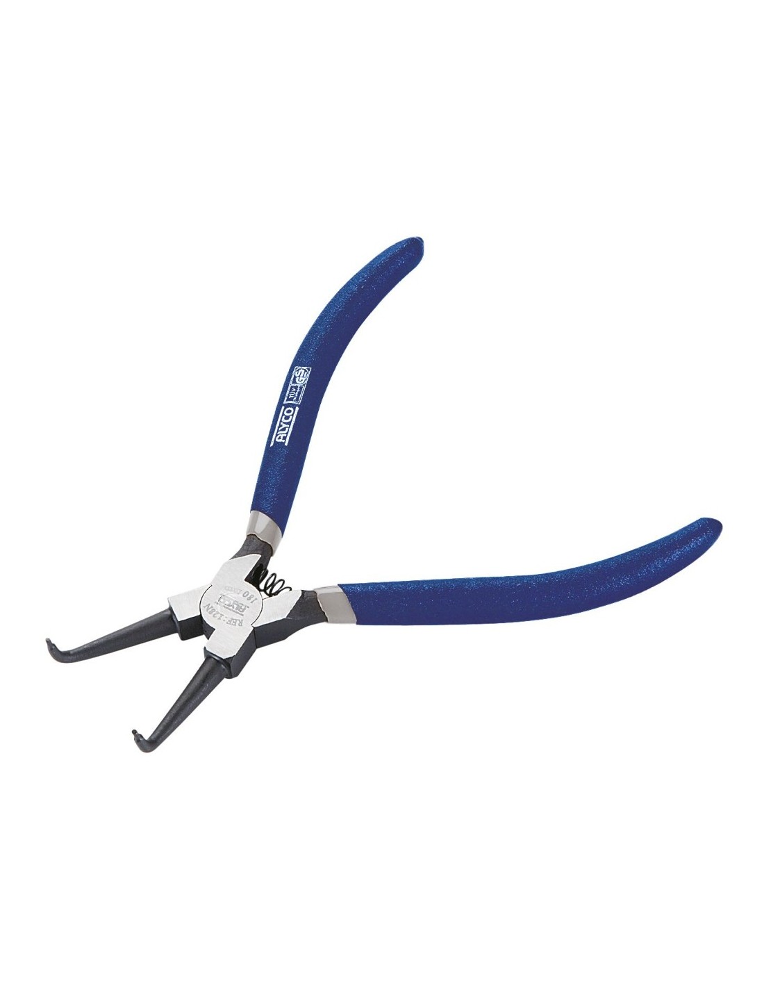 Alicate para arandelas de freno circlips con mangos ergonómicos y muelle de retención. Adecuado para anillas interiores. Alicate de alta duración, cómodo incluso en usos repetitivos intensivos. Alicate para uso en arandelas de freno y retención. Puntas es