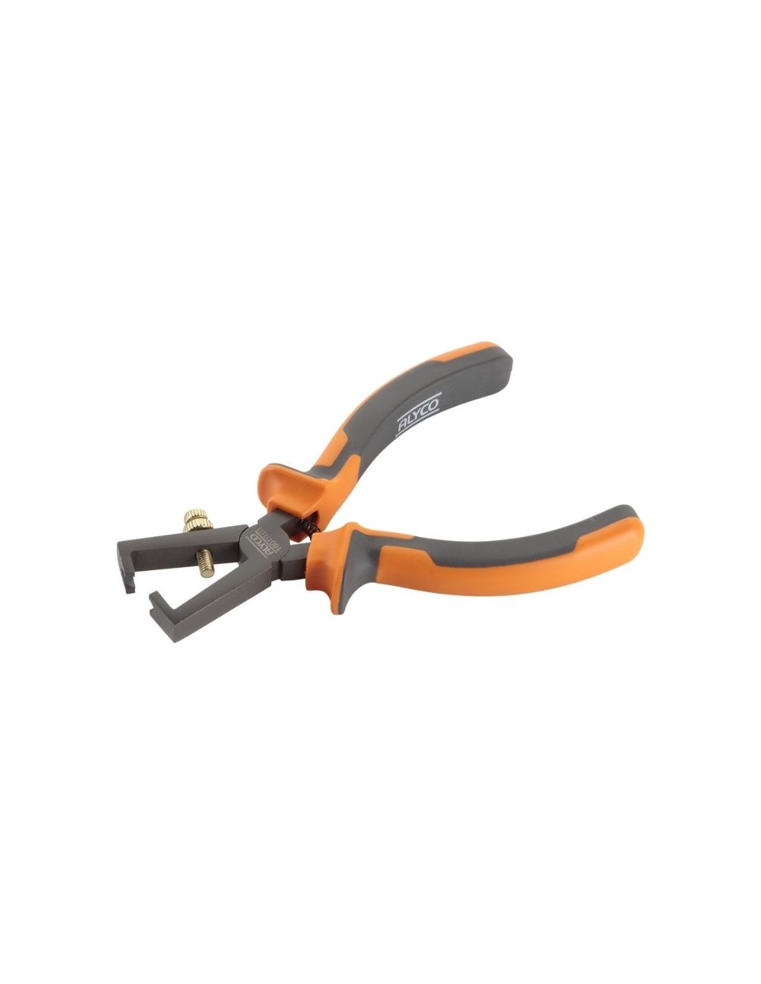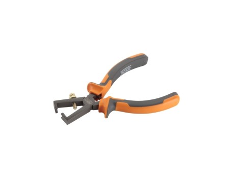 Alicate para pelado de cables ajustable en diámetro de pelado, de alta duración y con cuerpo metálico de alta precisión en el cierre de bocas, garantizando un rendimiento constante durante una larga vida y siendo cómodo incluso en usos repetitivos intensivos; ideal para trabajos de manipulación de cables eléctricos y de fibra óptica, cuenta con una zona de agarre con pulido fino y alineación perfecta para sujetar sin dañar el interior del cable; fabricado en acero al Cromo Vanadio, ofrece gran resistencia al desgaste, con acabado teflonado superficial que previene la oxidación y prolonga la vida útil de la herramienta; el tornillo de ajuste permite mantener la misma sección de pelado, evitando el desfilachado del cable; el cuerpo del alicate está tratado térmicamente para aumentar su dureza y reducir el desgaste, y el mango bimaterial proporciona un agarre seguro y confortable durante su uso.