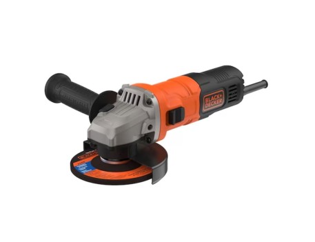 Mini amoladora Black+Decker 710W 115mm BEG010. Bloqueo eje. Interruptor deslizante. Protección re-arranque. Empuñadura ergonómica lateral.