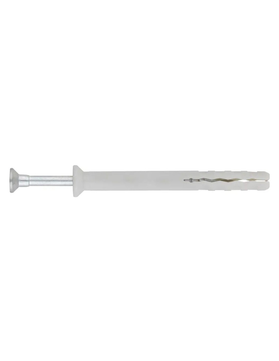 Taco clavable, premotando con tornillo avellanado de huella PZ. Permite afrontar fijaciones en materiales tanto huecos como macizos. Se puede instalar con facilidad con un golpe de martillo gracias a su rosca y punta de tipo arpón. Cuenta con un collarín avellanado, que permite que quede enrasado en el material base. El taco está fabricado en nylon y el tornillo en acero zincado.