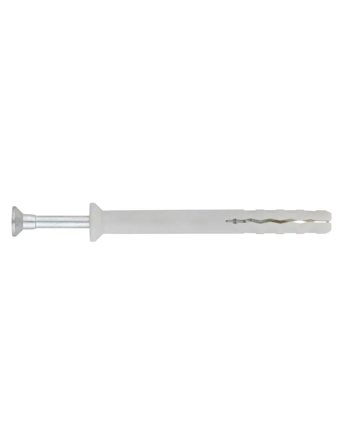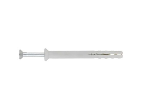 Taco clavable, premotando con tornillo avellanado de huella PZ. Permite afrontar fijaciones en materiales tanto huecos como macizos. Se puede instalar con facilidad con un golpe de martillo gracias a su rosca y punta de tipo arpón. Cuenta con un collarín avellanado, que permite que quede enrasado en el material base. El taco está fabricado en nylon y el tornillo en acero zincado.