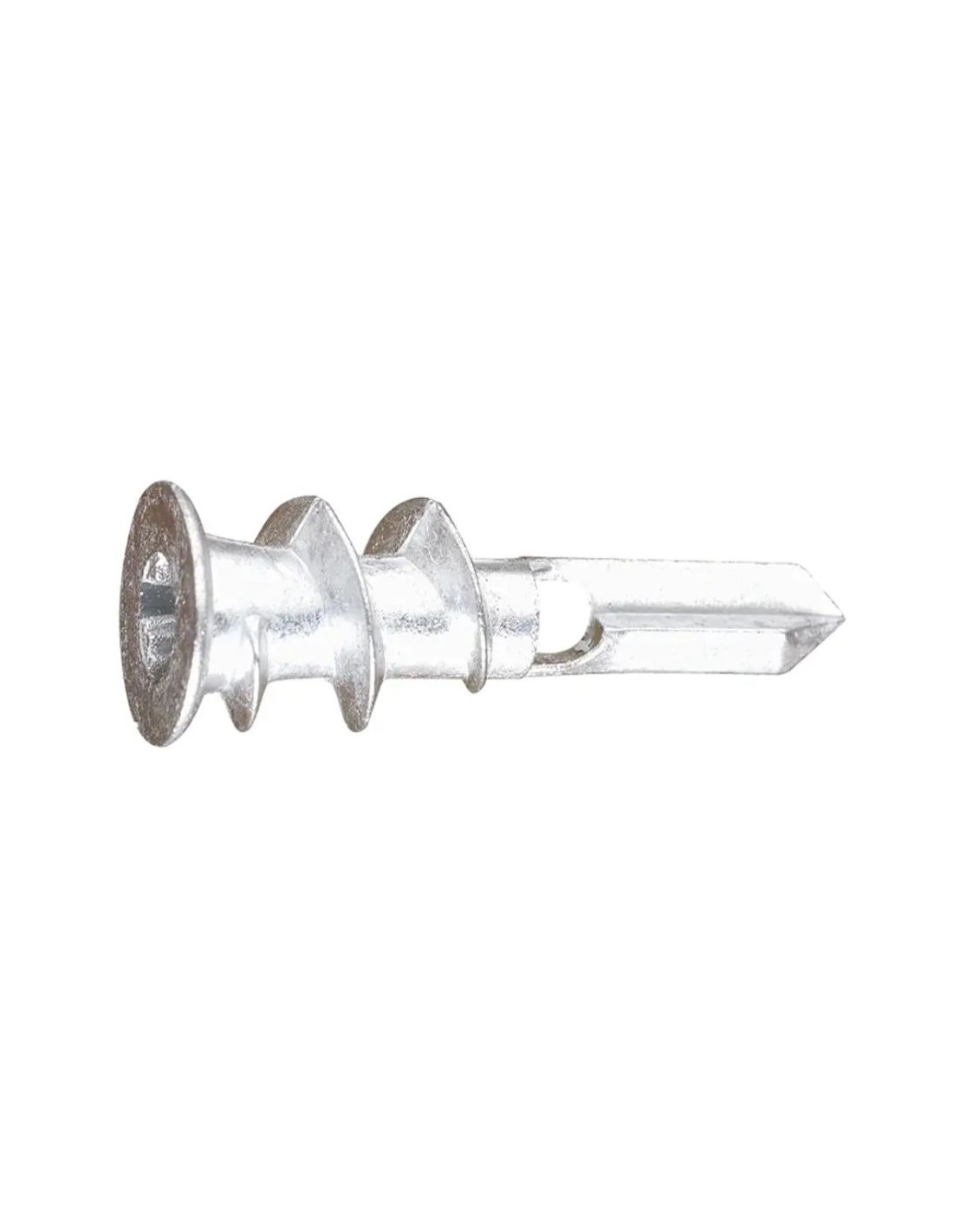 Taco metálico para fijar elementos ligeros sobre placas de yeso laminado autoperforante. Permite instalar objetos como cuadros, apliques o evaporadores de aire acondicionado, entre otros. Se puede instalar sin taladro previo. Está fabricado en zamak.