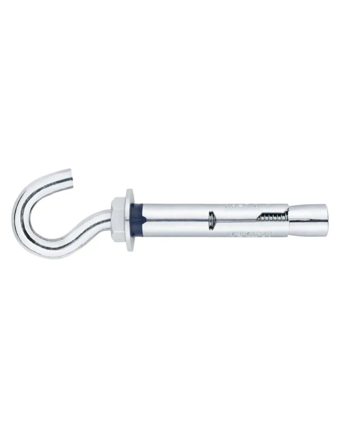 Anclaje tipo camisa con gancho para cargas medias en materiales macizos. Incorpora antigiros para evitar que el anclaje rote en el apriete. Anclaje de expansión mecánica e instalación por par controlado. Fabricado en acero con recubrimiento zincado.