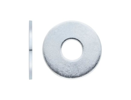 Arandela DIN-9021, de ala ancha. Permite distribuir la fuerza del apriete en uniones con tornillos normalizados, reforzando las fijaciones. Su uso ayuda a prevenir daños en la zona que soporta la carga. Se suele emplear en trabajos con madera o el montaje de maquinaria. Está fabricada en acero con recubrimiento zincado.