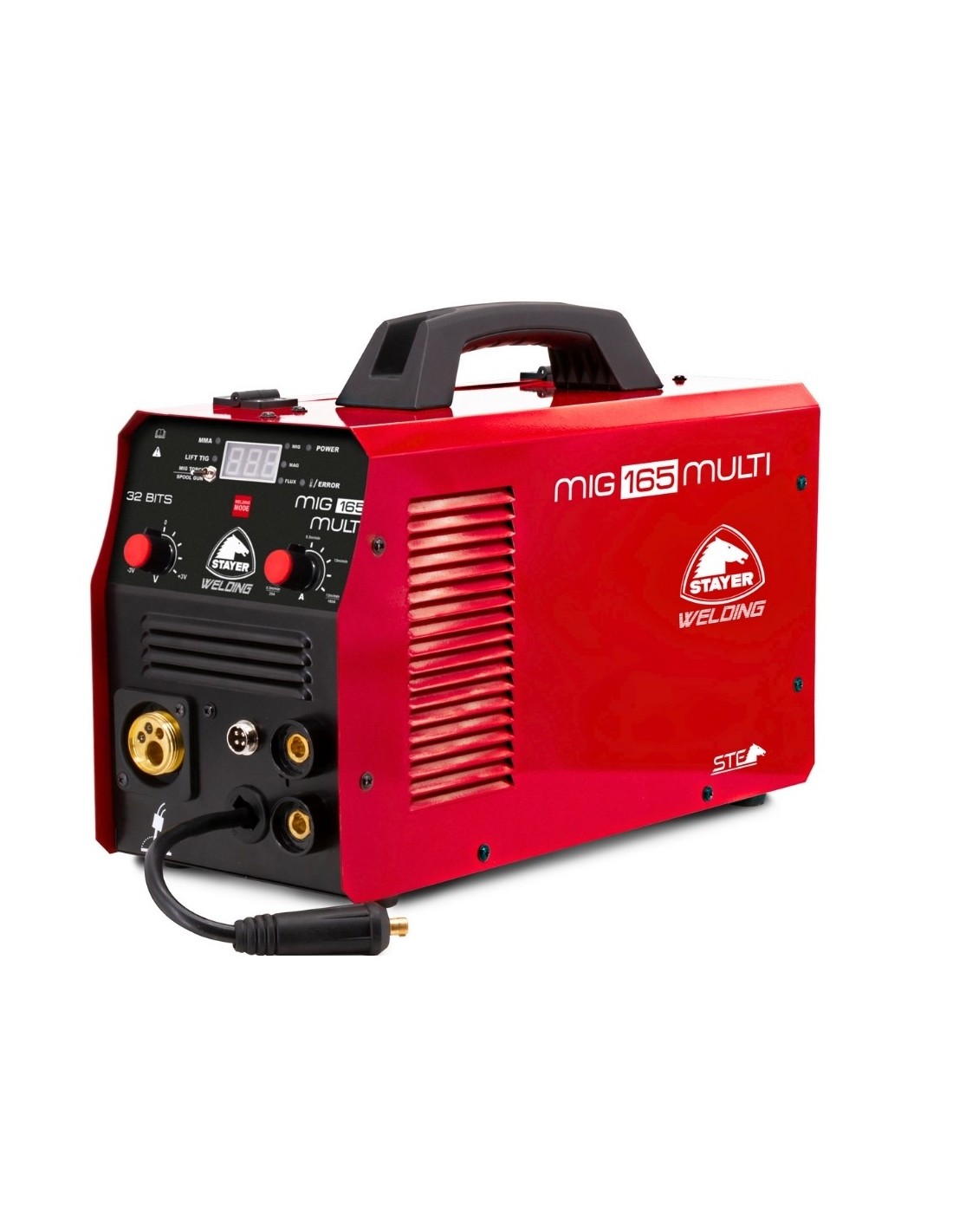 Soldador Stayer MIG 165 MULTI 4 en 1: MIG/MAG, TIG Lift Arc, electrodo, flux core. Factor marcha 60%. Incluye antorcha 15AK. Cambio automático. 13kg.
