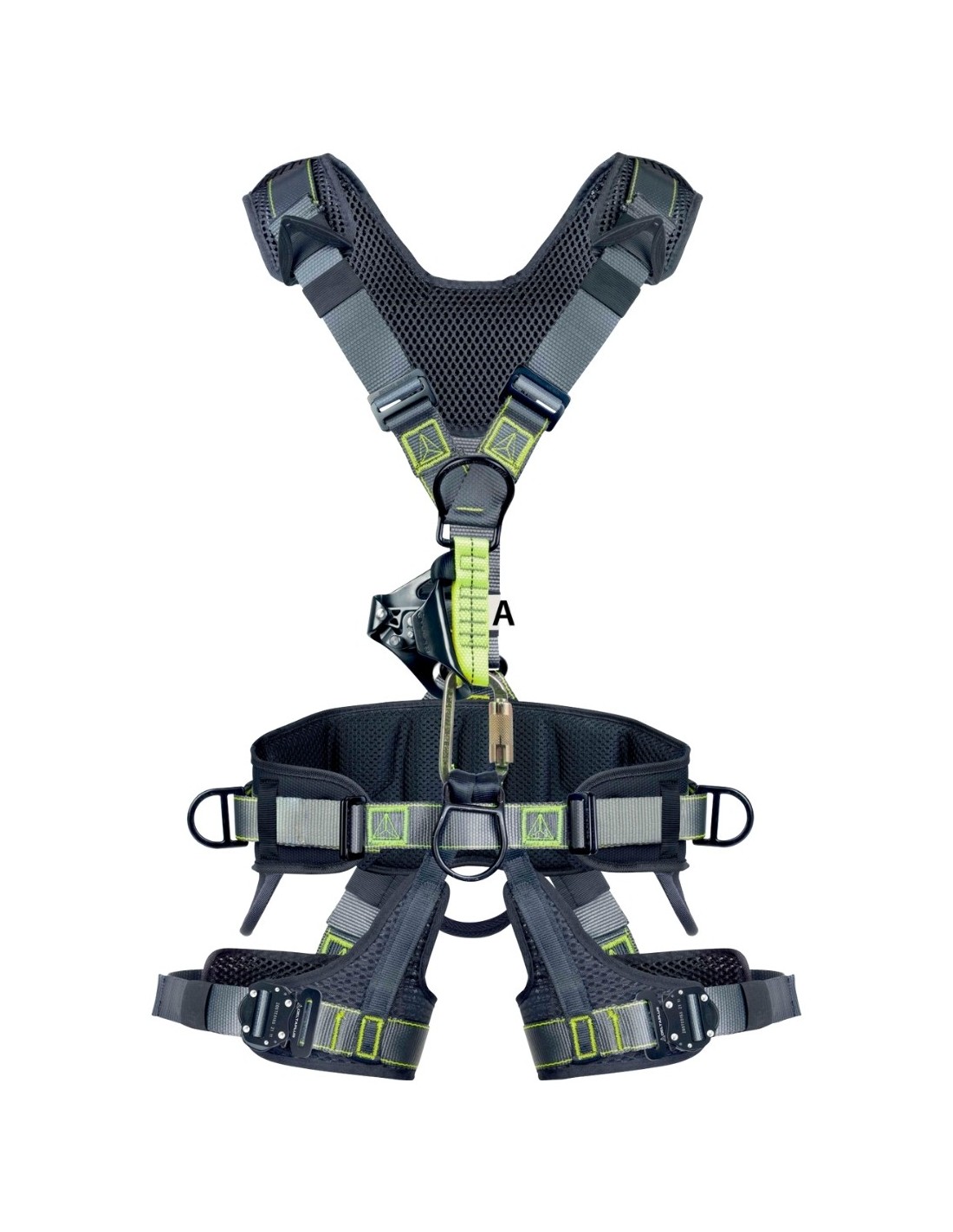 Arnés Jaguar HAR36R talla S, acolchado comfort, cinta bicolor, 2 puntos anticaídas (dorsal/esternal), 2 laterales, 1 ventral, cinturón incorporado, EN361, EN358, industria vertical y cuerda.
