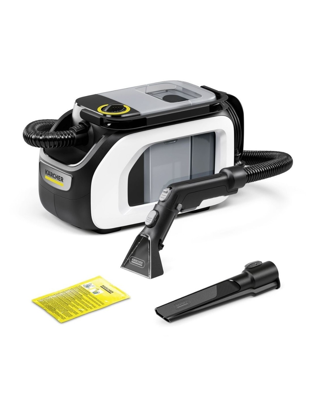 Limpieza en profundidad y diseño compacto: la lava-aspiradora SE 3 Compact Home limpia las superficies textiles con gran potencia, de forma energéticamente eficiente y sin dejar residuos. Gracias a su diseño compacto, además de ser manejable, el equipo ahorra espacio al guardarlo, por lo que está listo en todo momento para una limpieza en profundidad y cómoda incluso en caso de suciedad imprevista. La suciedad de muebles tapizados, esterillas y alfombras pequeñas se elimina de manera rápida y eficaz. La manguera de aspiración larga y flexible con manguera de detergente interior garantiza una gran comodidad y flexibilidad también en zonas de difícil acceso. El largo cable garantiza la máxima amplitud de movimientos. Con prácticas opciones de almacenamiento en el equipo, todos los accesorios están siempre a mano. El sistema de depósito 2 en 1 permite un uso que evita el contacto con la suciedad. E incluso después de la limpieza, la lava-aspiradora impresiona con su higiénica función de enjuague para evitar la aparición de bacterias y olores. Incluye boquilla de lavado de tapicerías, boquilla para ranuras y detergente.