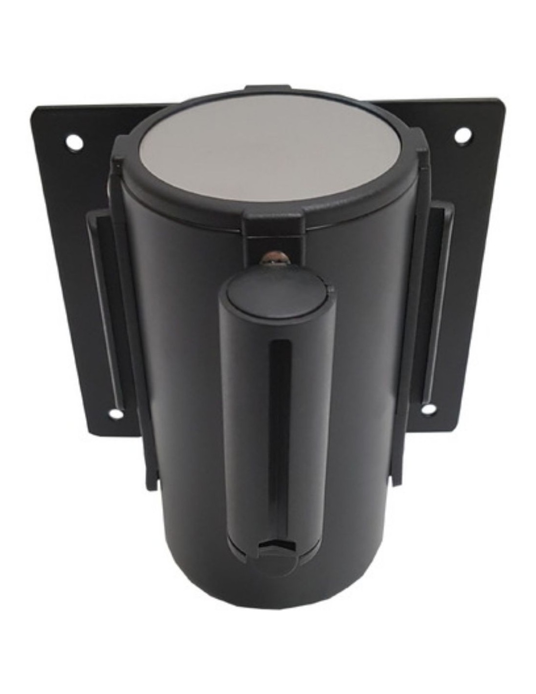Soporte a pared estándar negro con cinta extensible de lona negra de 2m.