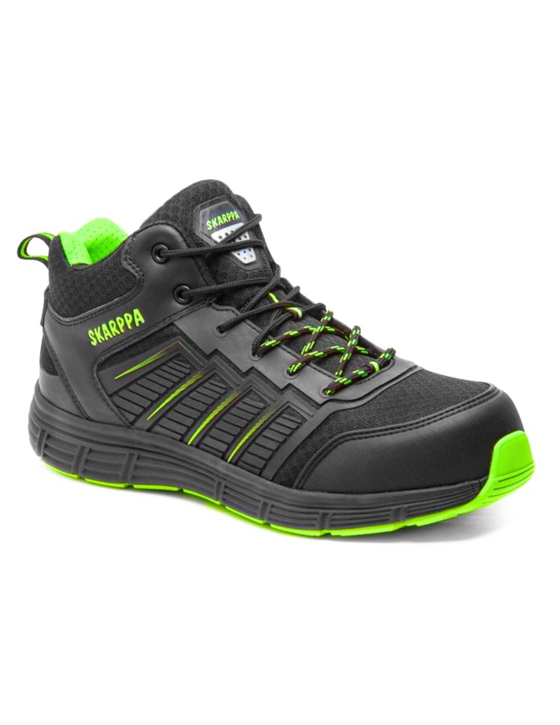Puntera fibra vidrio: impacto 200 julios, compresión 15kN. No detectado escáneres anti-metal, mejores propiedades térmicas aislamiento. Tallas 36-48.