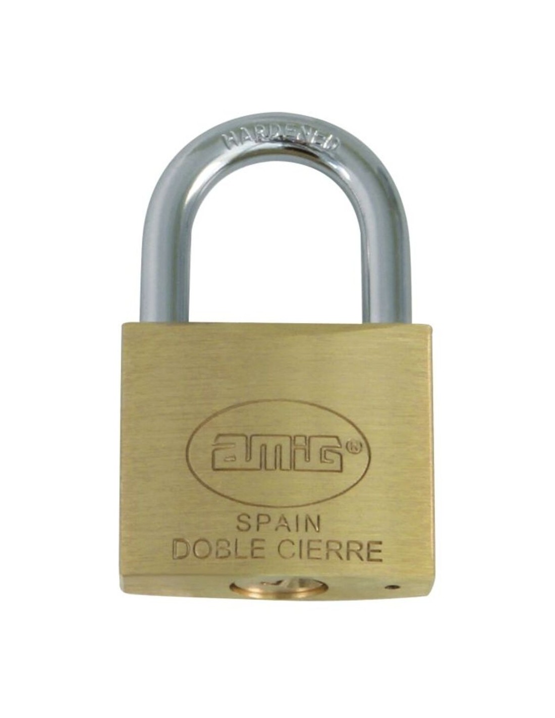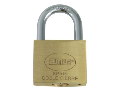 Candado de latón AMIG 2-50 mm, ideal para asegurar puertas y cerraduras. Alta resistencia y durabilidad para la seguridad de tus pertenencias.
