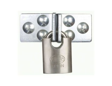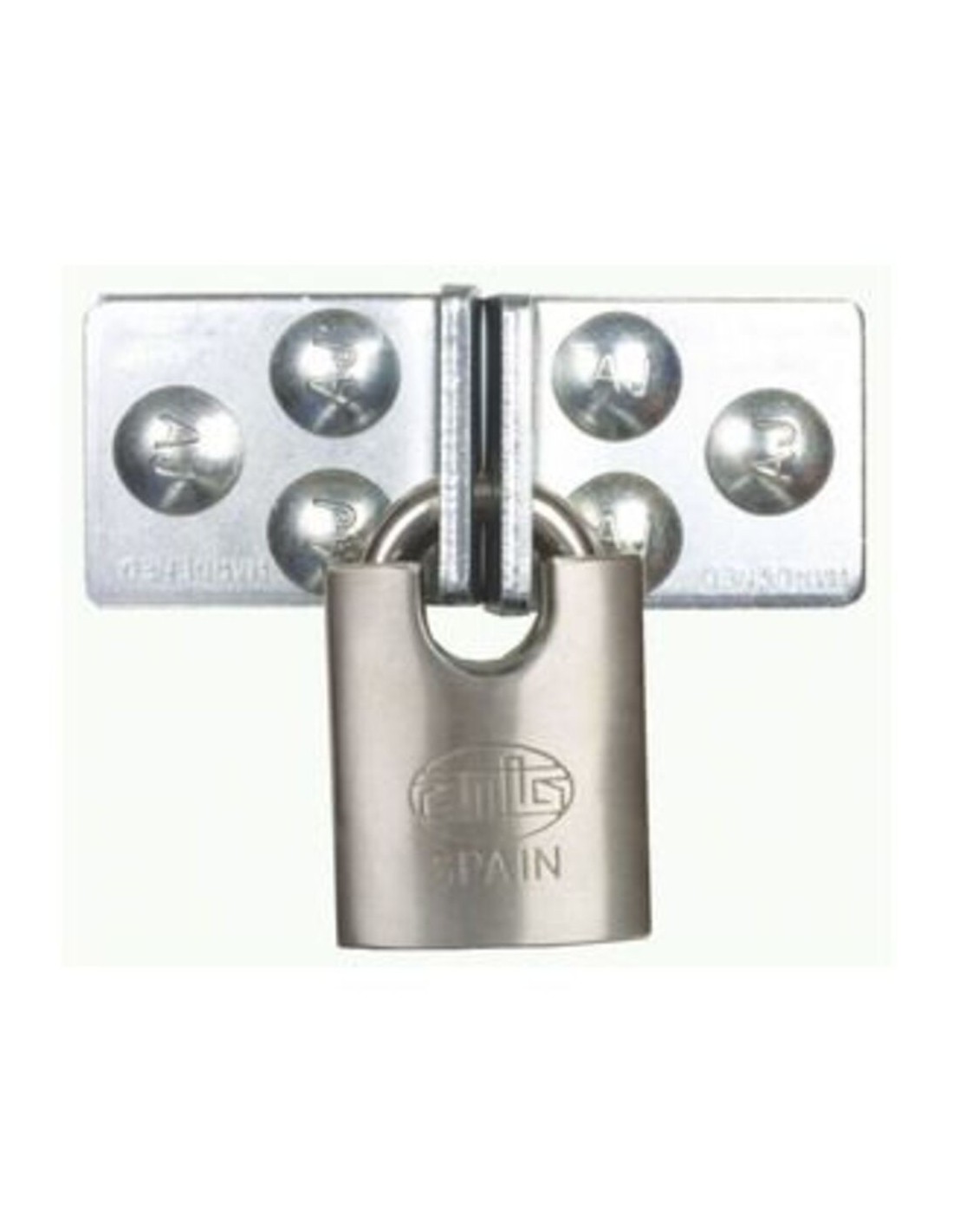 Portacandado de acero zincado AMIG 3, ideal para seguridad en puertas y accesos. Resistente y duradero, perfecto para uso doméstico y profesional.