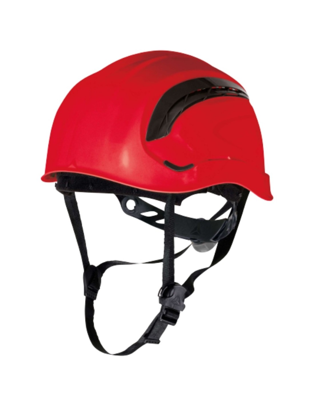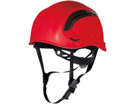 Casco obra ventilado ABS trabajos altura sin visera. Barboquejo 3 puntos, transpirabilidad máxima. EN 397 certificado. 368g rojo ajustable.