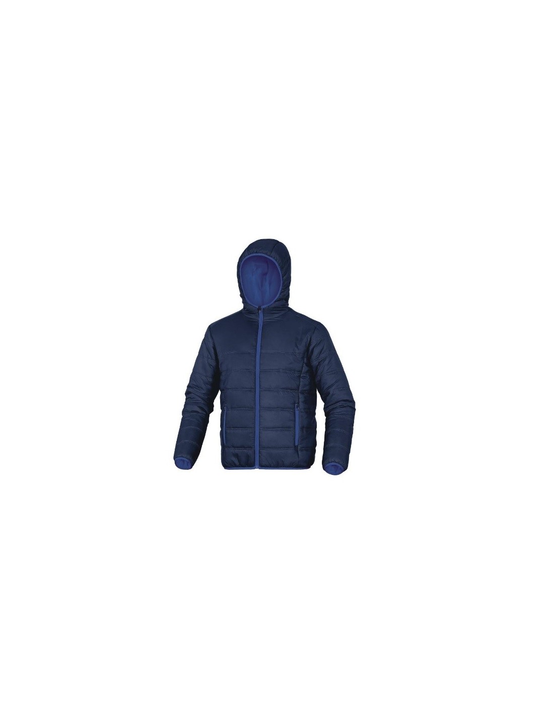 Plumón acolchado DELTAPLUS DOON azul marino-azul rey combinado con gama MACH. Tejido 100% poliamida acolchado ultraligero y cálido. Forro tafetán poliéster confort térmico. Cierre cremallera antifrío. Capucha fija integrada. Borde inferior mangas y bajo prenda terminación al bies. 2 bolsillos amplios. Prenda ligera máxima comodidad. Protección frío e intemperie. Combinable con parka lluvia SLIGO. Colores disponibles: azul marino-azul rey, gris-naranja, negro-rojo. Tallas S a 3XL. Ideal servicios, logística, transporte. ATENCIÓN: Este artículo NO es un Equipo de Protección Individual EPI. Uso casual profesional estilo moderno bicolor.