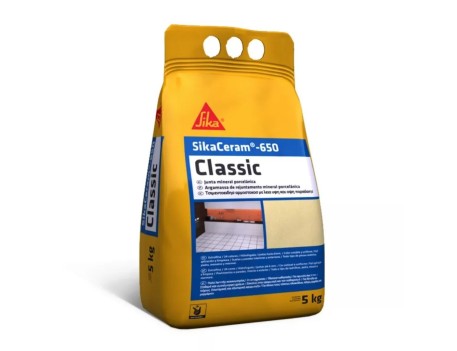 SikaCeram®-650 Classic es una lechada de cemento premezclada que se presenta en bolsas, para el relleno de juntas de 1 a 6 mm de ancho en paramentos y pavimentos. Los aditivos contenidos en la mezcla proporcionan una protección activa, mantiendo estable los colores, así como su resistencia a la abrasión y su capacidad de repeler el agua. Apto para aplicaciones interiores y exteriores.