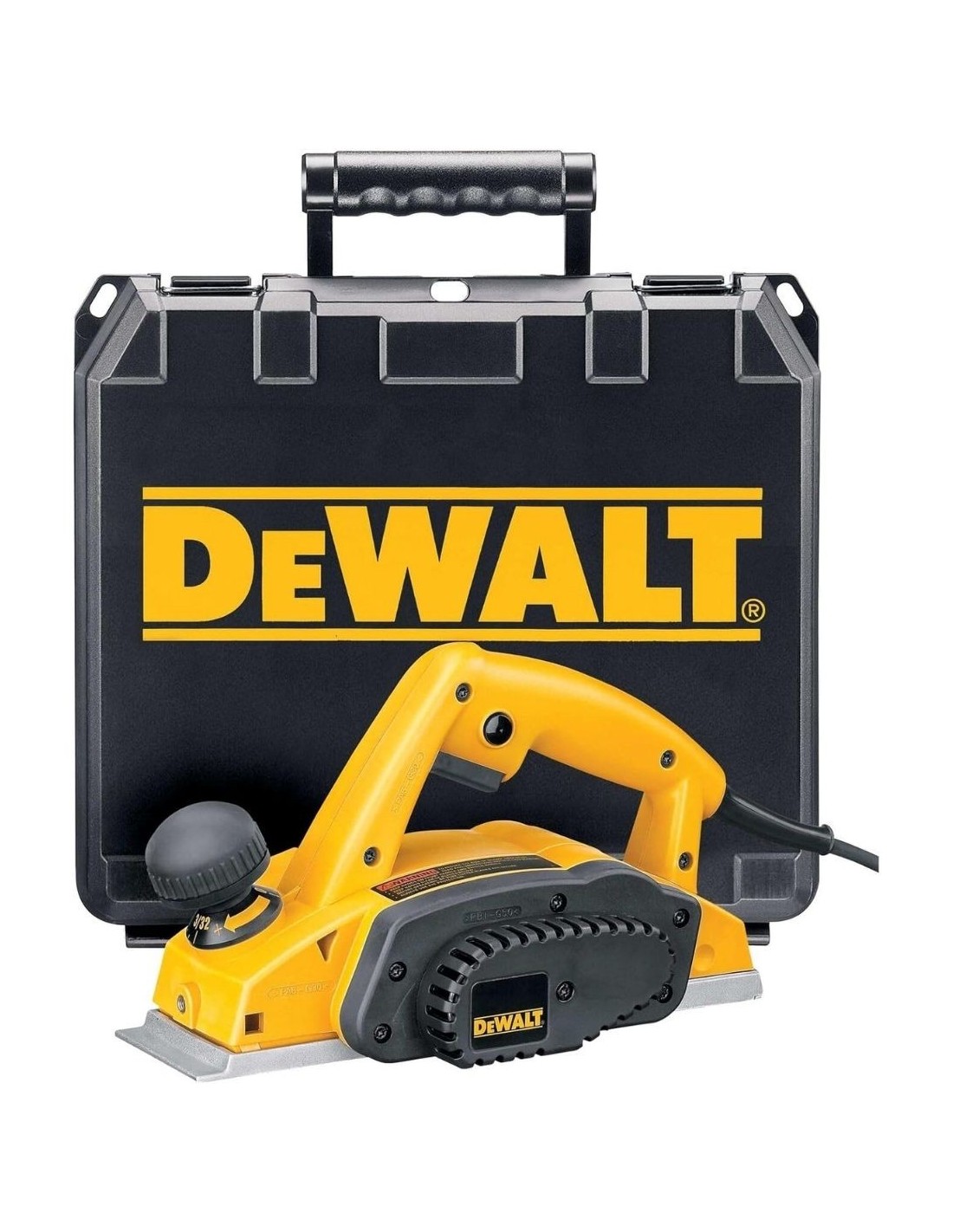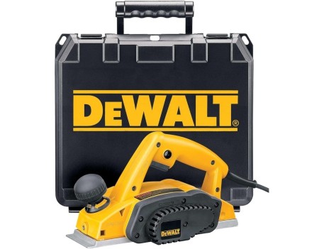 Cepillo DeWalt 600W con maletín anchura 82mm profundidad 2.5mm. Control profundidad empuñadura frontal pasos 0.1mm. Motor alto rendimiento maderas duras.