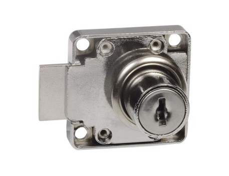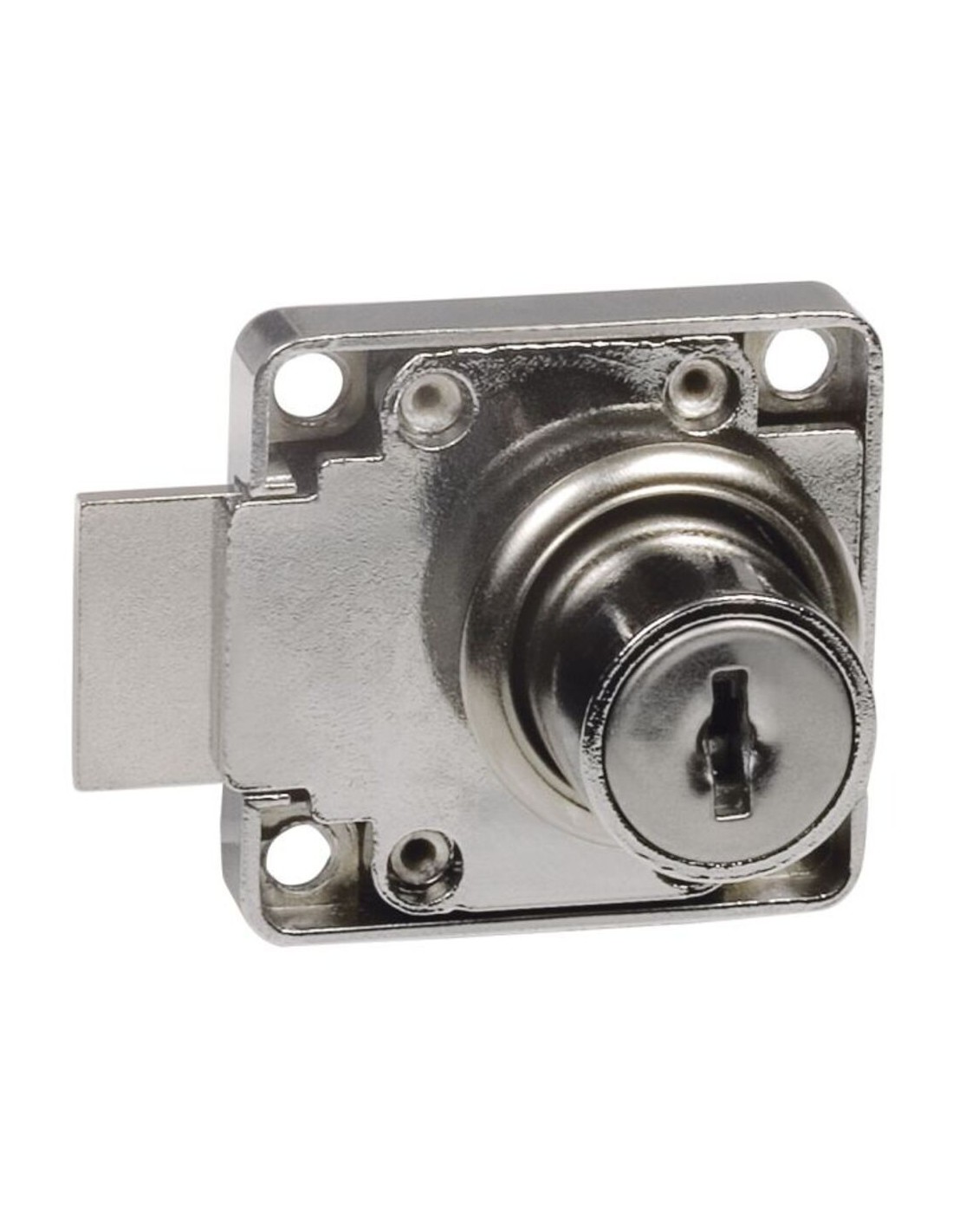 Cerradura de mueble AMIG en níquel, ideal para asegurar tus muebles. Diseño práctico y duradero, perfecto para uso doméstico y profesional.