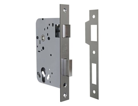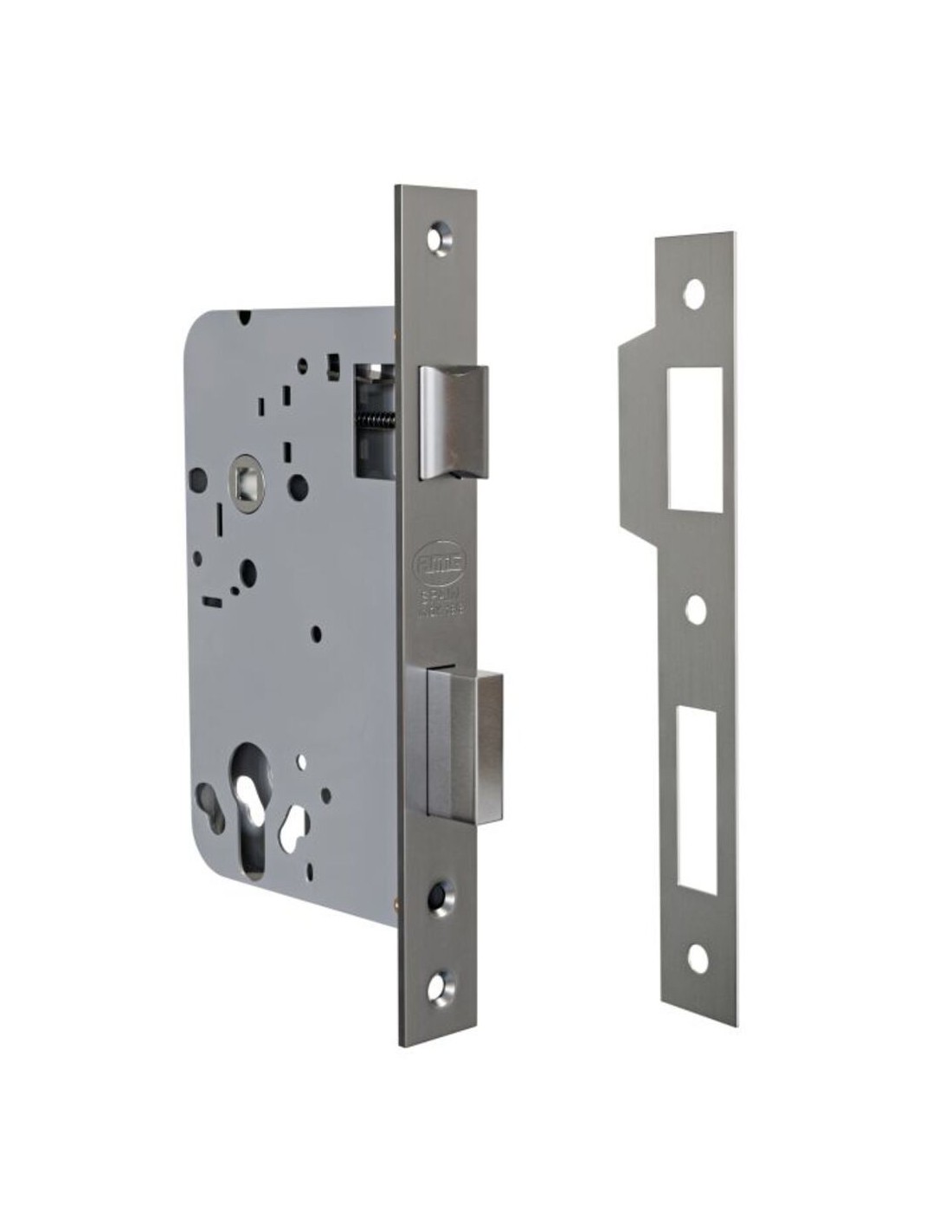 Cerradura de acero inoxidable AMIG F725, ideal para puertas de seguridad. Resistente y duradera, perfecta para proteger tu hogar.