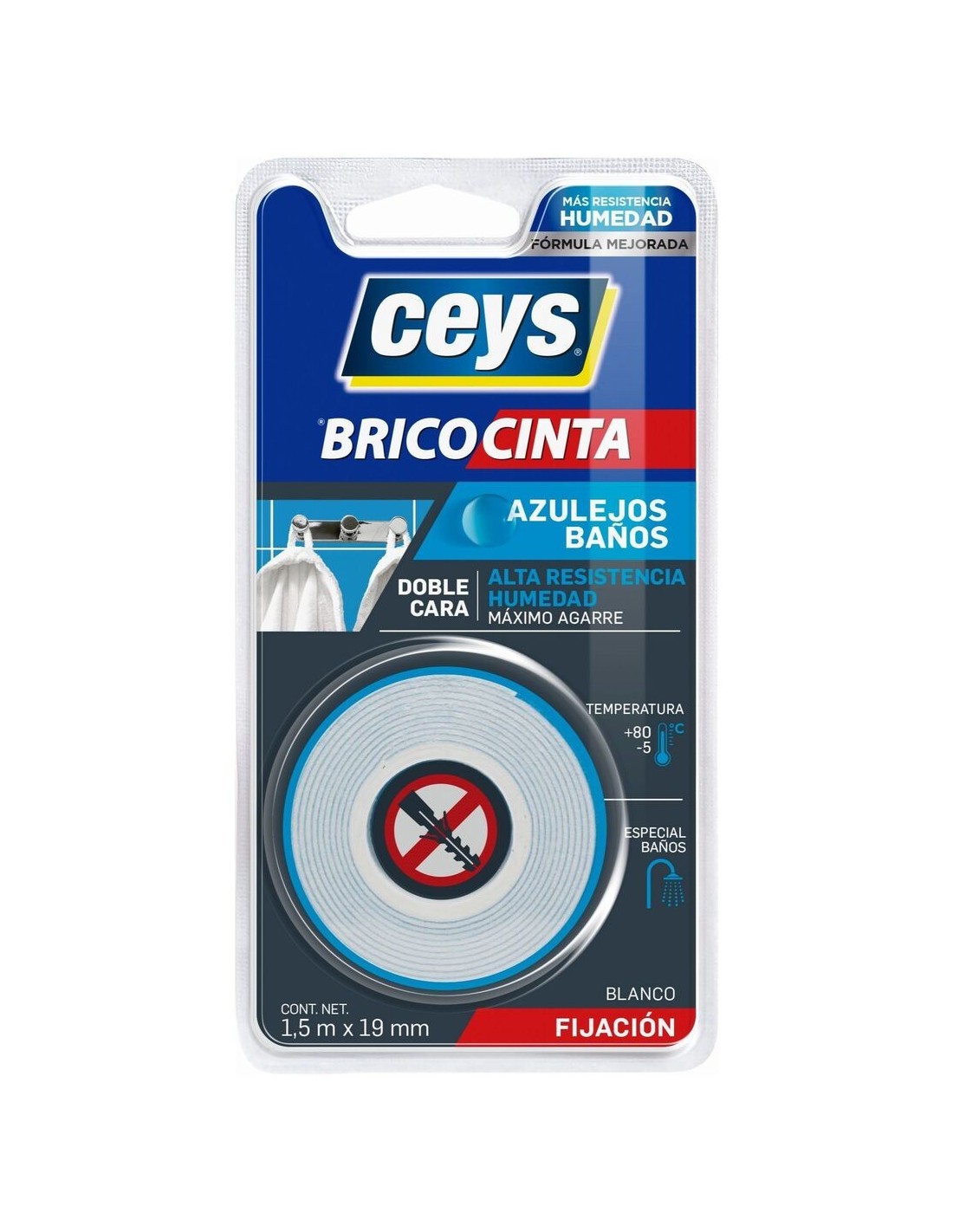 Cinta adhesiva CEYS para azulejos y baños, 1.5m. Ideal para reparaciones rápidas y decoración. Resistente al agua y fácil de aplicar.