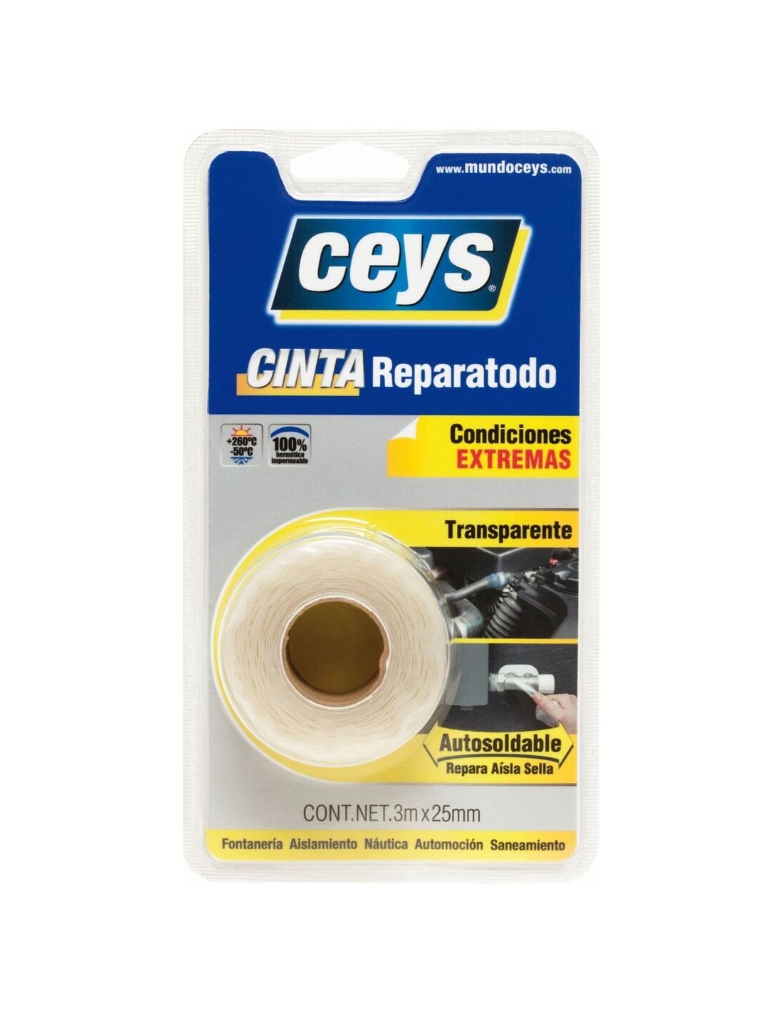 Cinta reparadora autovulcanizante CEYS, 3m x 25m. Ideal para reparar fugas y daños en diversas superficies. Resistente y fácil de usar.