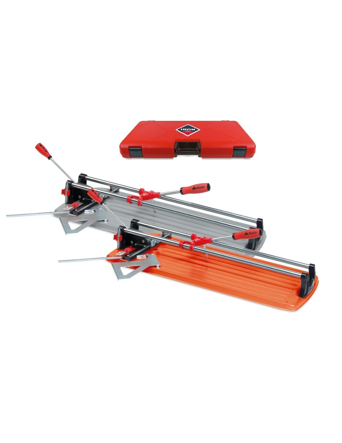 La gama de cortadoras manuales TS-MAX ofrece al profesional una herramienta ligera y funcional. Las cortadoras manuales TS-MAX de RUBI son ideales para el corte intensivo de baldosa cerámica en general, y en especial, para el corte frecuente de gres porcelánico (tipo BIa).Todos los modelos de la gama de cortadoras manuales TS-MAX incluyen un práctico separador monopunto de altas prestaciones con 800 Kg. de potencia máxima de separación, especialmente diseñado para el corte de materiales de alta dureza y con espesores máximos de 15 mm.Este separador incluye la función SMART POWER por la que el propio separador regula la potencia de separación dependiendo del espesor de la baldosa, aplicando la máxima potencia en los materiales de mayor espesor.Las empuñaduras bimaterial de las cortadoras manuales TS-MAX presentan un cuidado diseño ergonómico, que proporcionan al usuario una mayor comodidad durante el trabajo.Todos los modelos de cortadoras manuales TS-MAX incluyen un tope lateral de grandes dimensiones para una mayor sujeción de la baldosa cerámica, y una mayor precisión en los cortes repetitivos.Las cortadoras manuales TS-MAX de RUBI cuentan con una base reforzada y de grandes dimensiones, para que el profesional disponga de una mayor comodidad y estabilidad durante su uso. Las cortadoras manuales TS-MAX están equipadas con dos guías de acero cromadas, rectificadas y calibradas, con tratamiento anticorrosión. Este sistema de doble guía ofrece al usuario una mejor y mayor visibilidad de la línea de rayado, obteniendo así una alta precisión en todos los cortes.La posibilidad de utilizar toda la gama de rodeles intercambiables de RUBI de Ø 6 a 22 mm., permite adaptar las cortadoras manuales TS-MAX a cada material cerámico, y obtener el máximo rendimiento y calidad en el corte. Las cortadoras manuales TS-MAX incluyen, de serie, dos rodeles: uno de Ø 8 mm ENDURE para el corte de materiales de alta dureza y superficies rugosas o estructuradas, y otro de Ø 10 mm SILVER para gres esmaltado y cerámica en general.Por último, destacar uno de los aspectos más característicos y propios de las cortadoras manuales RUBI: la maleta de transporte, con cierres y bisagras reforzados, para proteger y facilitar la movilidad de nuestras cortadoras manuales TS-MAX.