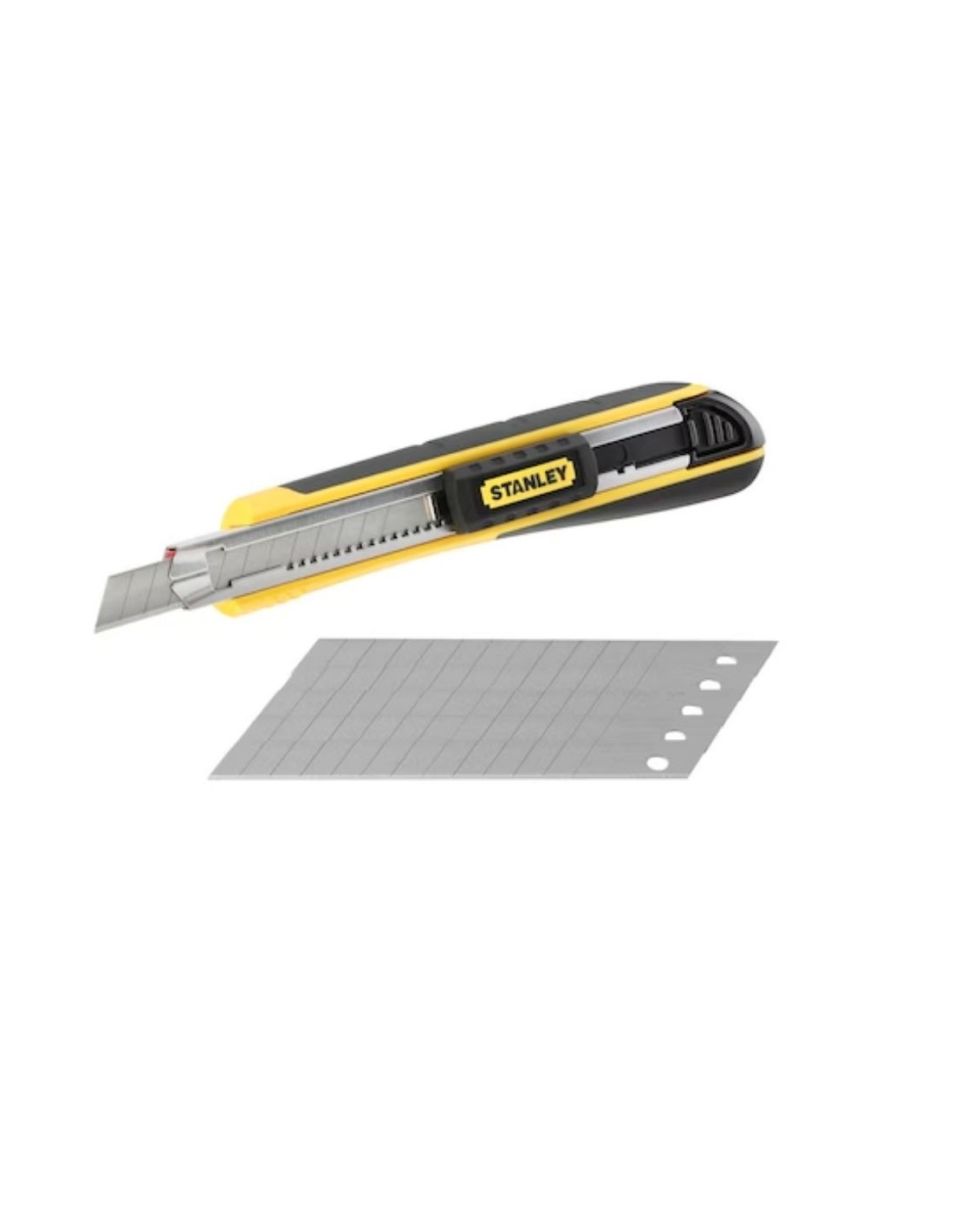 Cutter Stanley FatMax 0-10-475 9mm profesional cuerpo acero inoxidable mango bimaterial ergonómico. Cambio rápido hoja sin herramientas, diseño almacenaje elimina hoja antigua automáticamente nueva. Mecanismo limpieza hoja, rompe hojas extraíble. Almacenamiento 6 hojas capacidad. Hoja extraíble rápida seguro cambio segmento. Gran bloqueo ruedas cuchilla cortes duros. Herramienta construcción bricolaje oficina stainless steel durabilidad.