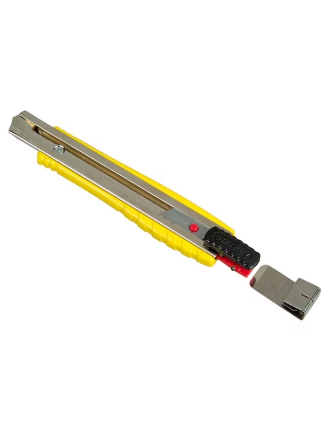 Cutter Stanley FATMAX 0-10-421 18mm metálico profesional cuerpo aleación aluminio acero inoxidable. Cúter resistente auto-bloqueo deslizante, cambio rápido cuchilla, clip cinturón portátil. Textura antideslizante, hojas integrado extraíble. 13 puntos afilados 9mm y 8 puntos 18mm máxima precisión cortes. Herramienta construcción, bricolaje, oficina. Compatible cuchillas Stanley estándar.