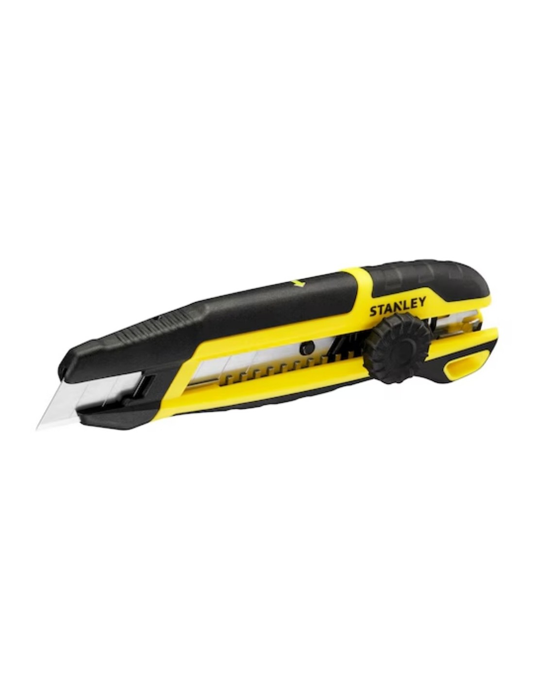 Cutter Stanley 18mm profesional con segmentación lateral. Cúter ergonómico, indicador corte, rueda ajuste. Ideal bricolaje y trabajo profesional.