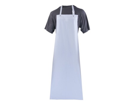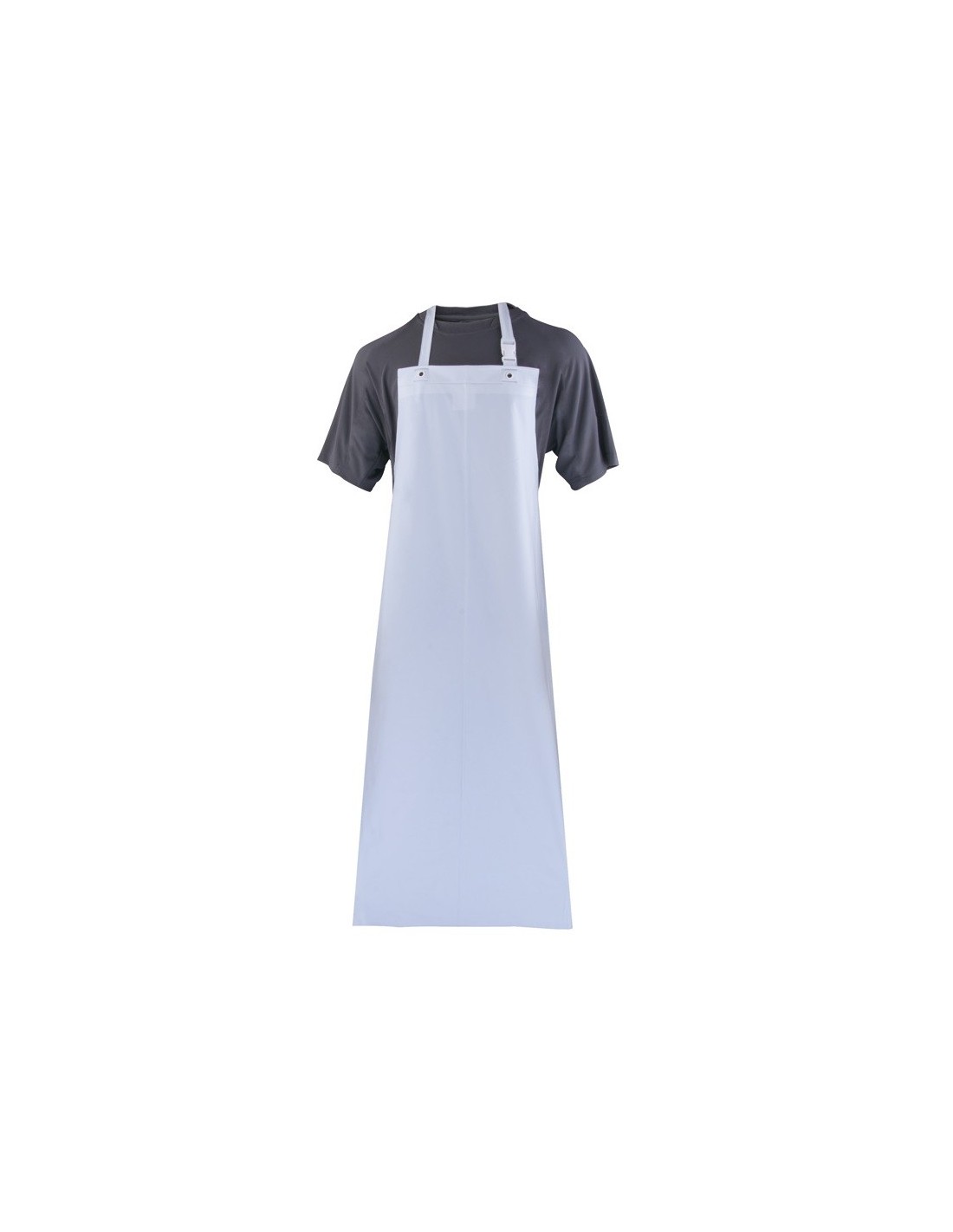 Delantal impermeable Delta Plus, 100% PVC, color blanco, largo estándar (aprox. 120 cm), ajuste con cintas resistentes, protección frente a líquidos y productos de limpieza.