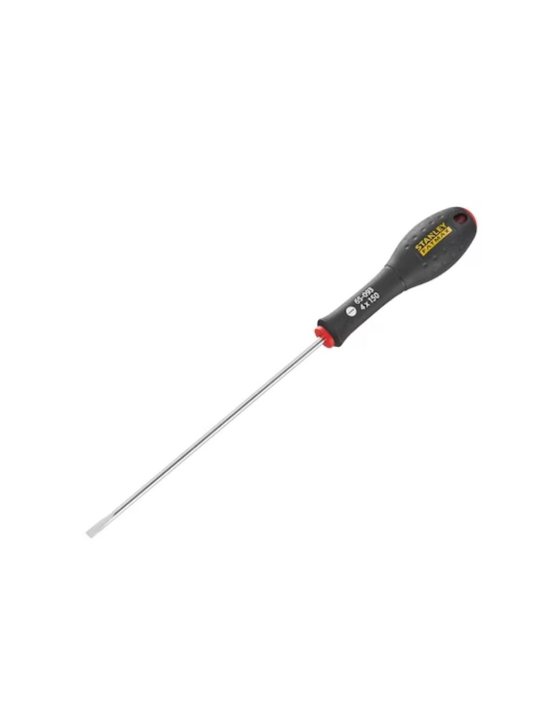 Stanley Fatmax 4x150mm, destornillador plano robusto, fabricado con acero tratado. Proporciona alcance adicional para trabajos complejos. Mango ergonómico para mayor control y comodidad en jornadas largas.
