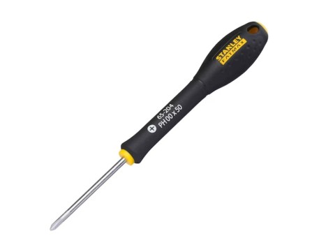 Destornillador Stanley Fatmax Phillips 0x75mm, fabricado con acero de alta calidad para mayor durabilidad. Ideal para trabajos eléctricos, mecánicos y bricolaje. Mango ergonómico para reducir la fatiga y mejorar el agarre.