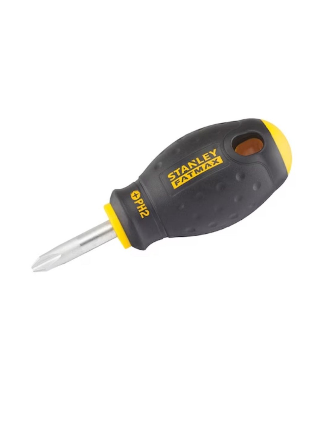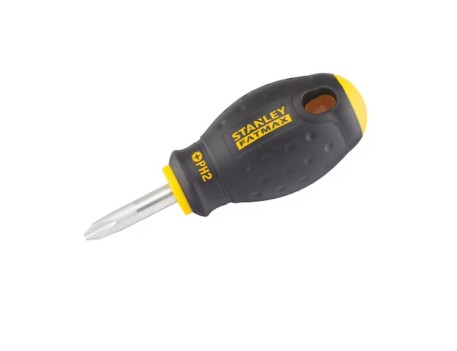 Stanley Fatmax PH2x30mm, destornillador Phillips de tamaño reducido, perfecto para espacios estrechos. Fabricado en acero tratado de alta calidad con mango ergonómico antideslizante.