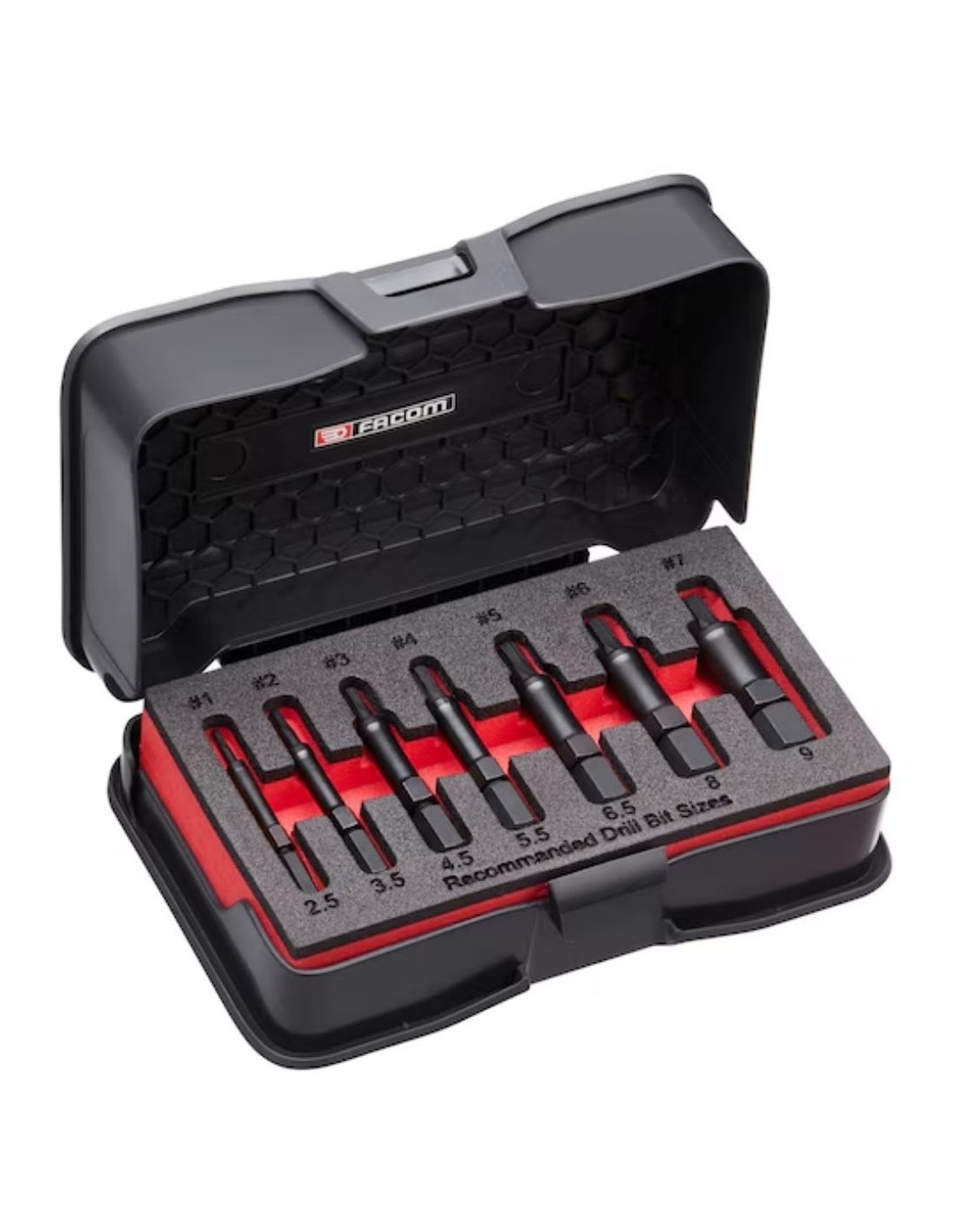 Set de extractores OGV SXE.J7MGRPP diseñado para la extracción segura de piezas y tornillos. Fabricados en acero de alta calidad para garantizar resistencia y durabilidad en trabajos mecánicos.