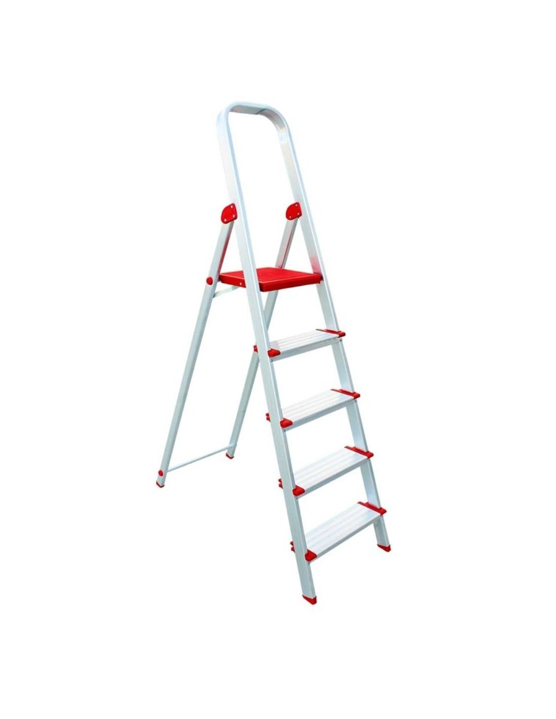 Escalera fabricada en aluminio, ideal para uso doméstico. Cuenta con peldaños estriados antideslizantes de 12 cm de profundidad, estructura resistente y cómoda.