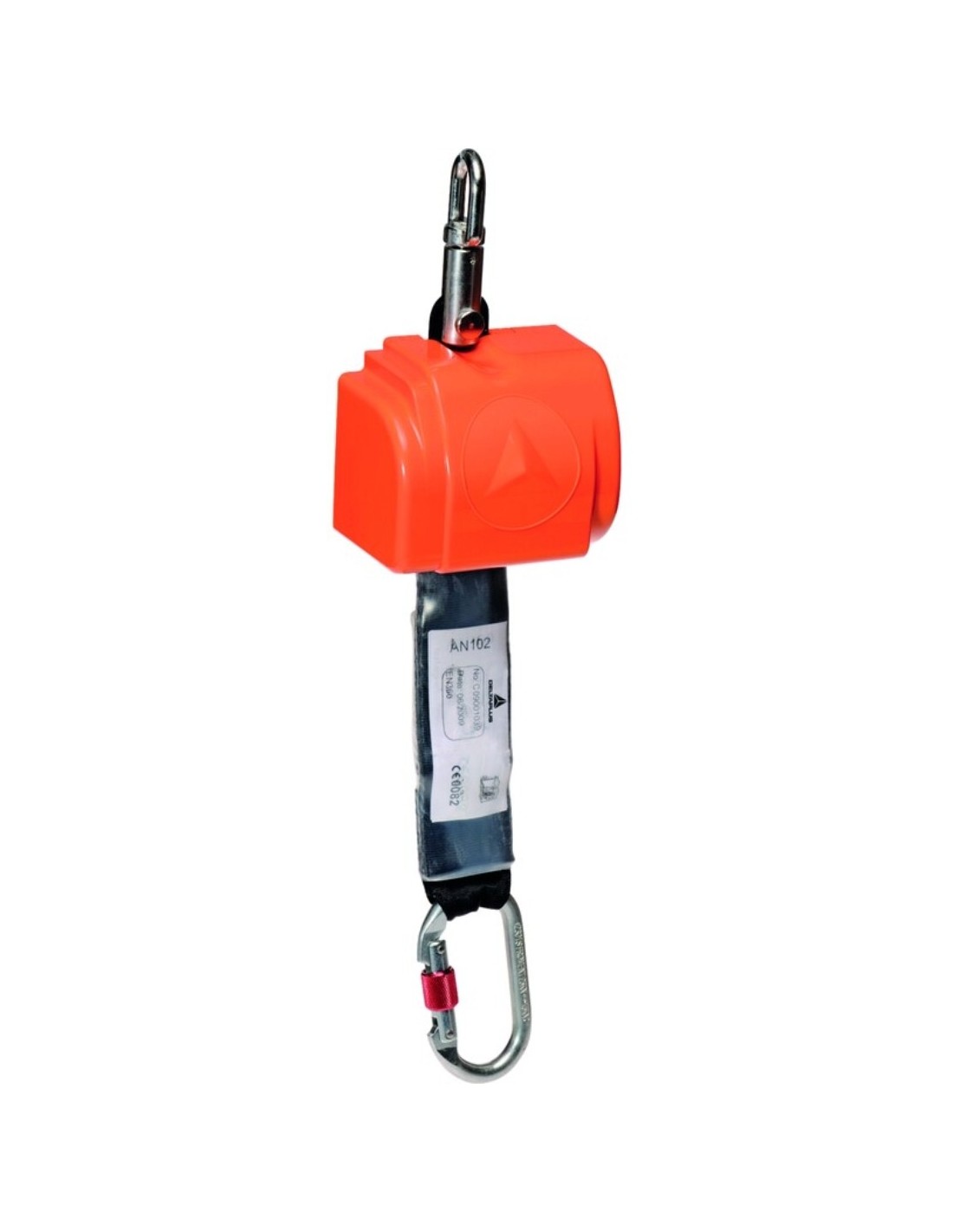 Anticaídas retráctil ligero y compacto Delta Plus, cinta poliéster 46 mm, longitud 2.5m, absorbedor de energía, carcasa plástico, conector acero giratorio, uso 150kg, norma EN360, color naranja.