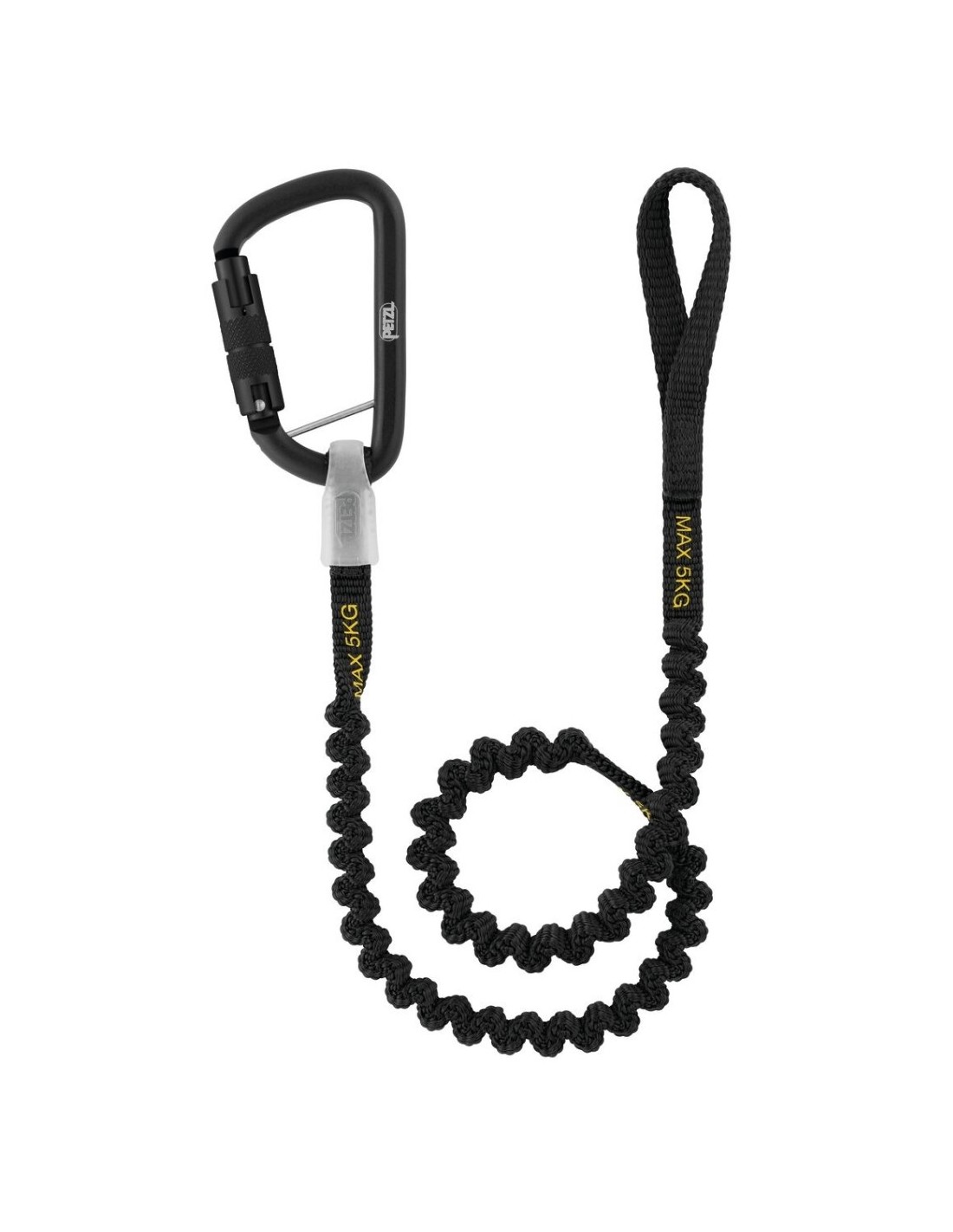 Lanyard Petzl para herramientas, 120 cm, carga máxima 5 kg, seguridad y resistencia.
