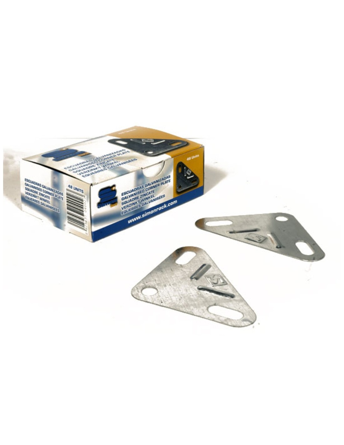 Esquinas galvanizadas Simonrack para estanterías. Resistencia y durabilidad. Perfectas para proyectos de bricolaje y almacenamiento seguro.