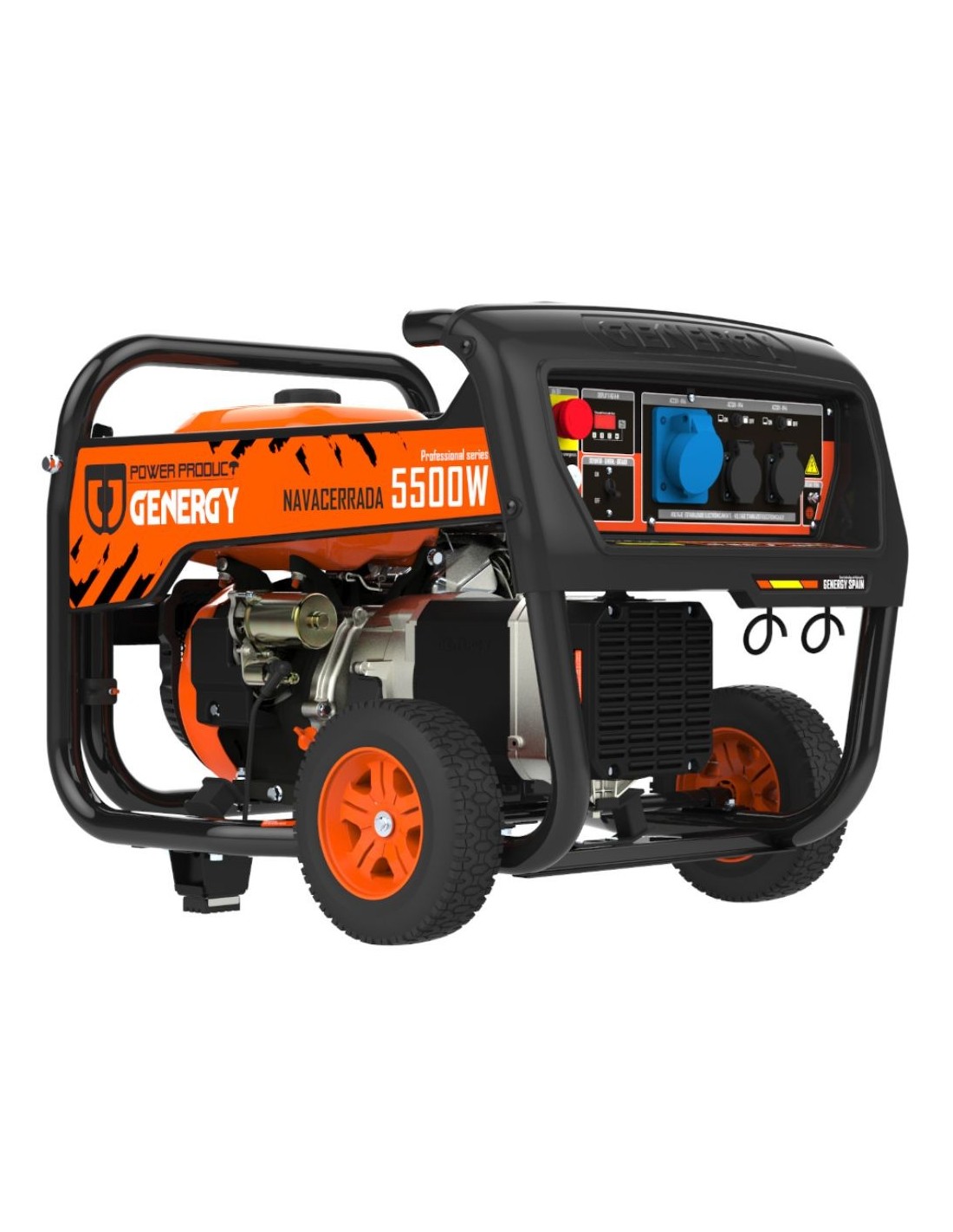Generador GENERGY NAVACERRADA 5500W con SVR, ruedas integradas y tomas 2×16A + 1×32A IP44.