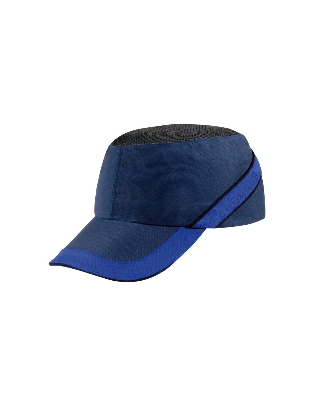 Gorra protectora antichoques ventilada comodidad máxima visera corta, azul/marino. 3 longitudes visera disponibles. Polietileno EVA. EN 812 certificada. 176g ajustable.