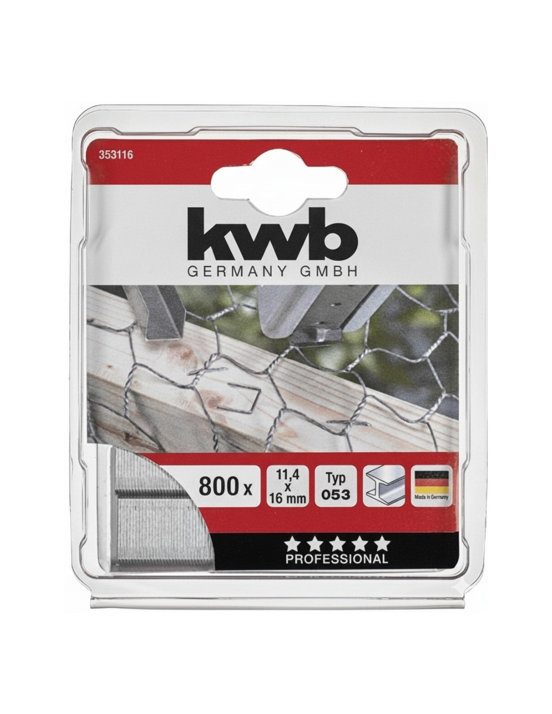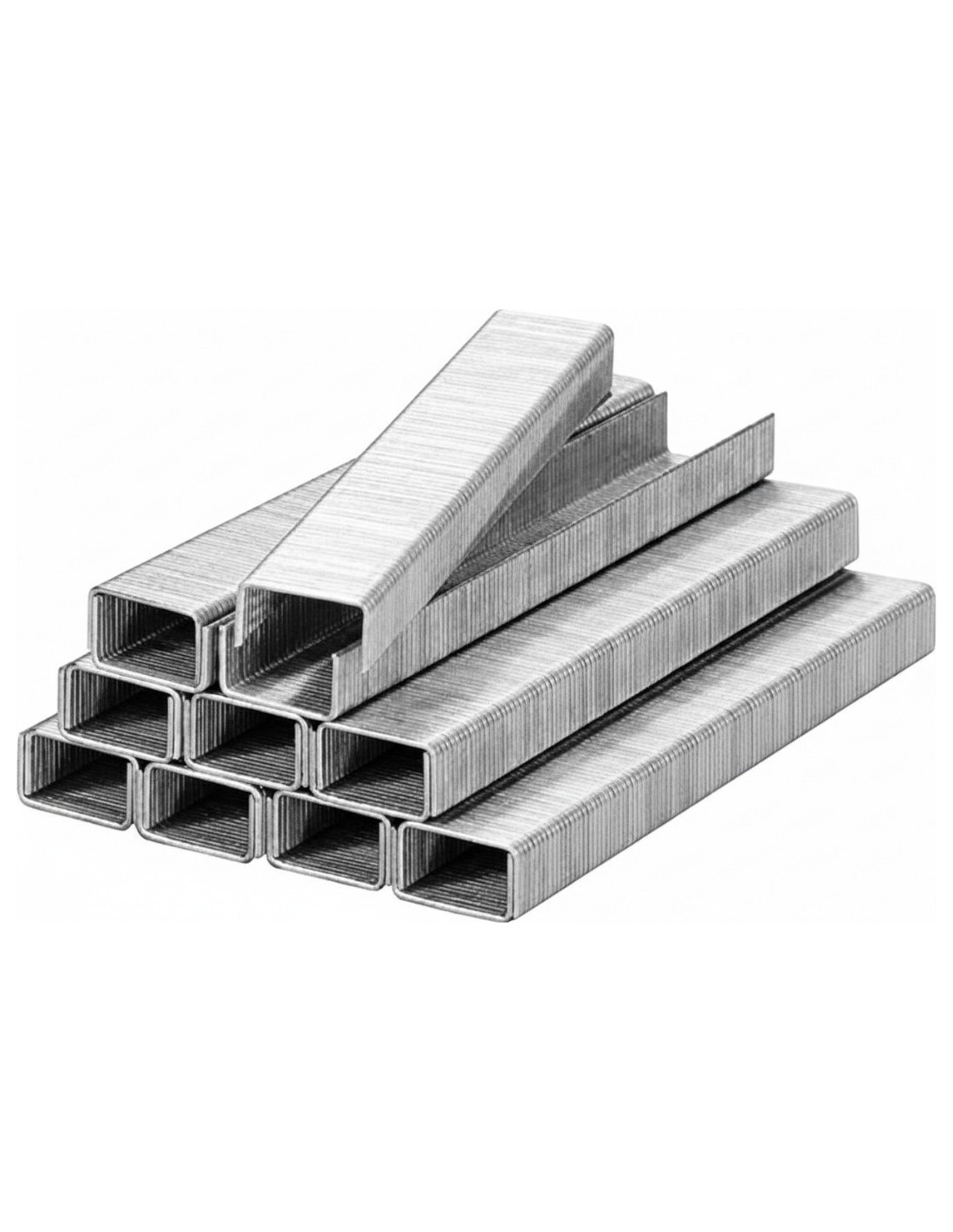 Grapas de acero inoxidable modelo 053/C, referencia 49353118. Resistentes a la corrosión, ideales para uso en ambientes húmedos o exteriores. Caja de 800 unidades, perfectas para trabajos profesionales que requieren durabilidad.