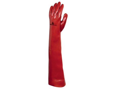 Guante PVC Químico Protección Hombro Rojo - Protección profesional especializada trabajos prolongados con resistencias químicas máximas contra aceites e hidrocarburos uso intensivo industrial.
